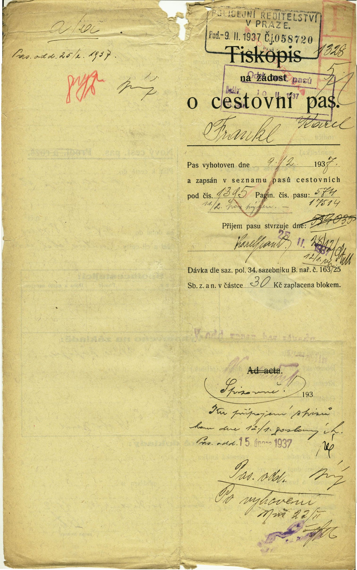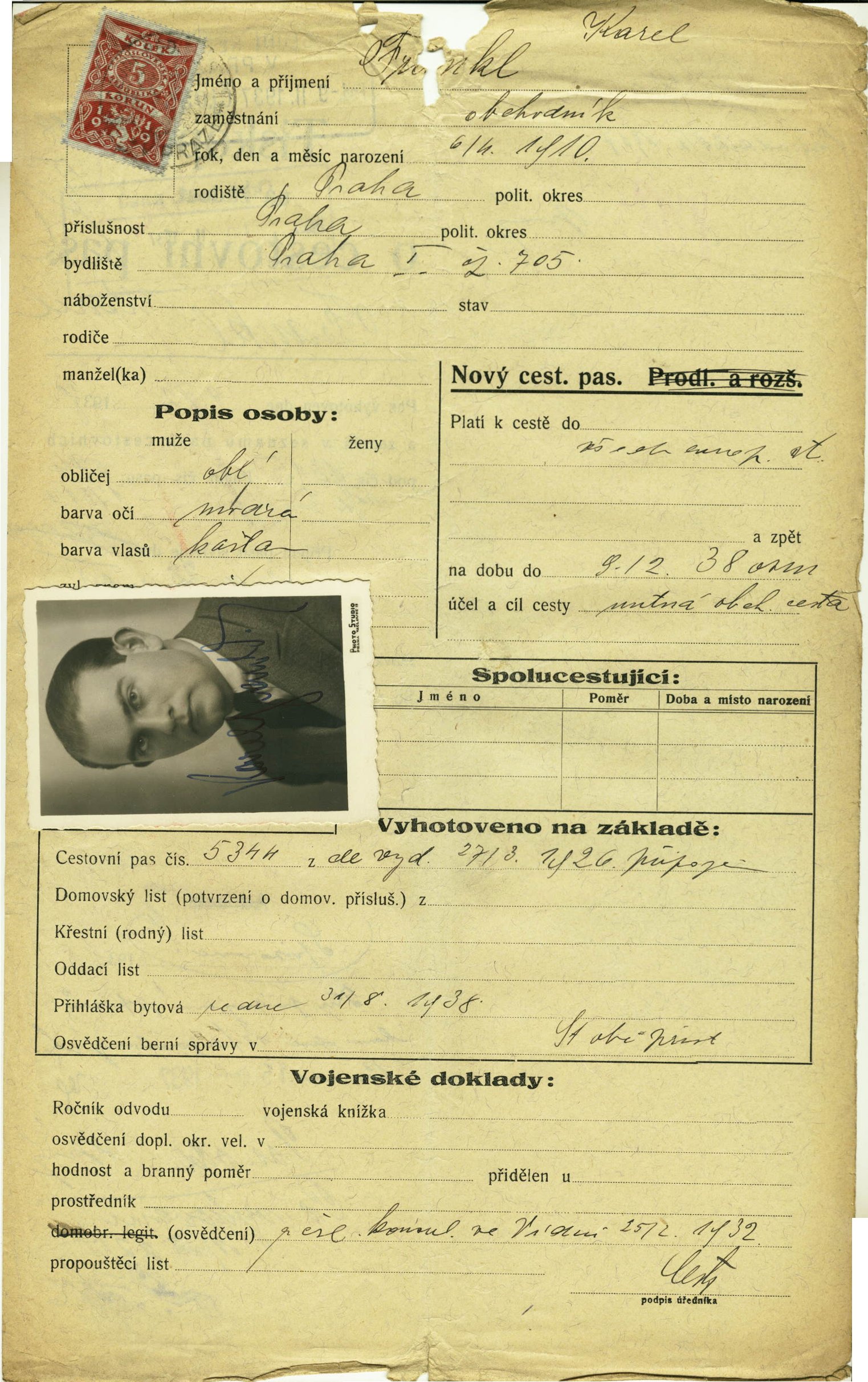 Frankl Karel: Passport application