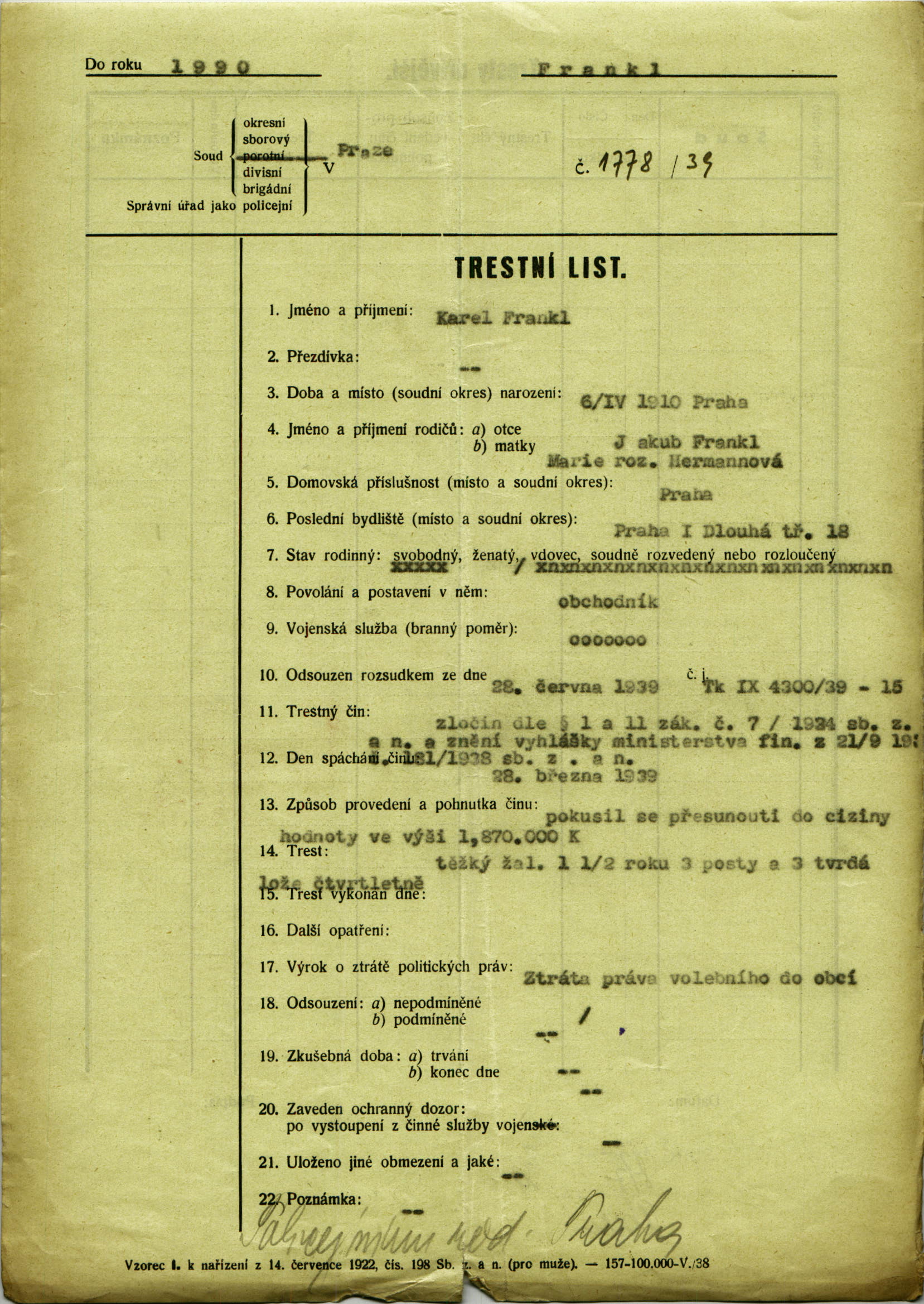Nationalarchiv Prag > Polizei-Direktion Prag > 1941-1950 > F > Frankl Karel