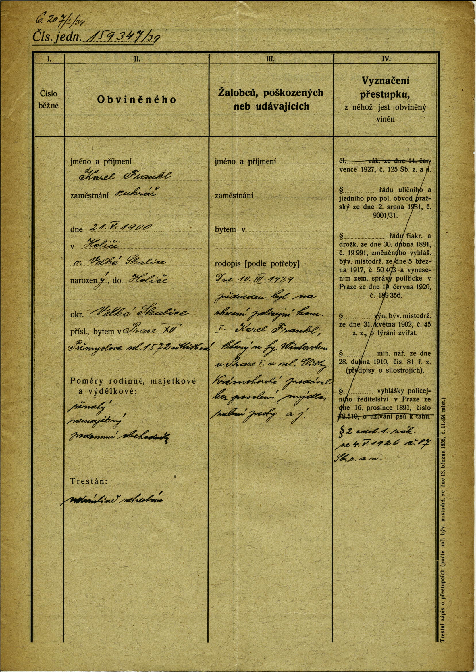 Nationalarchiv Prag > Polizei-Direktion Prag > 1941-1950 > F > Frankl Karel