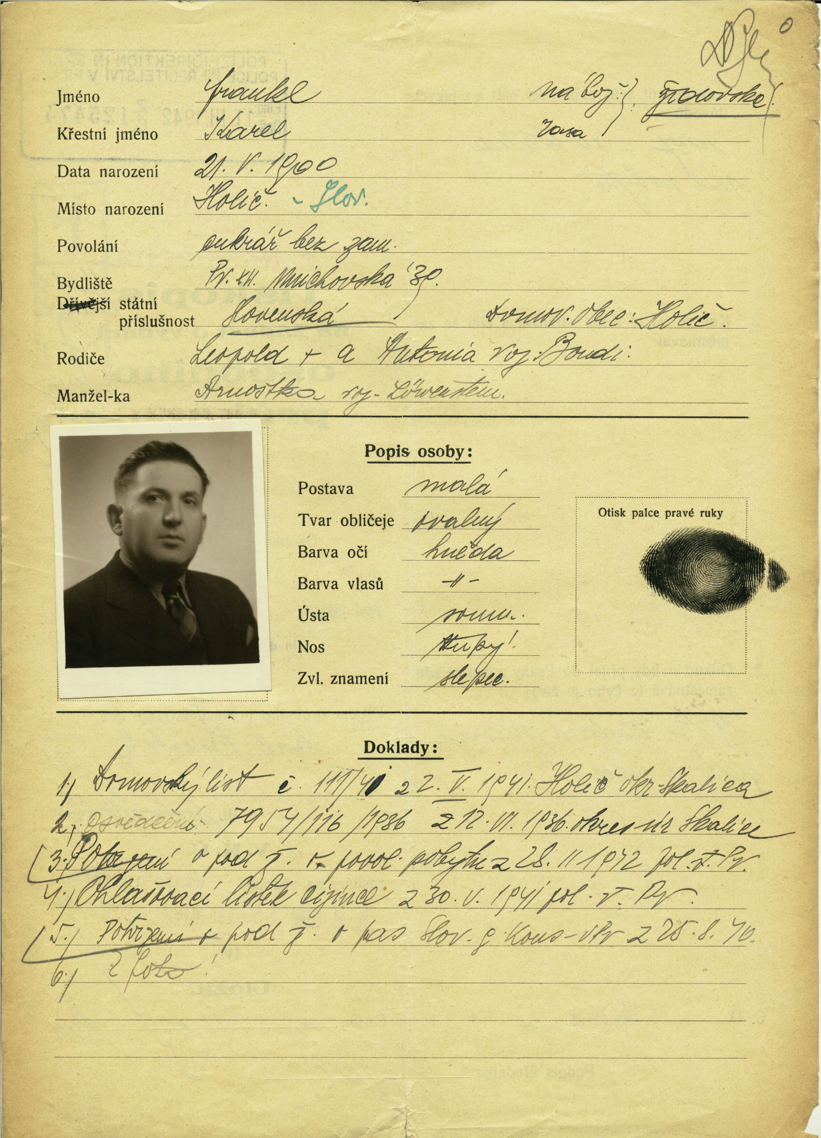 Nationalarchiv Prag > Polizei-Direktion Prag > 1941-1950 > F > Frankl Karel