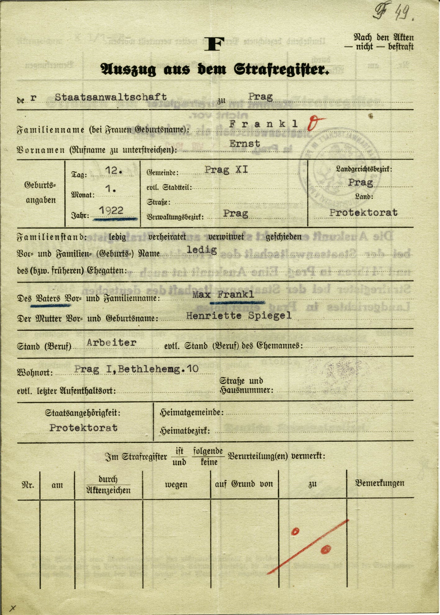 Nationalarchiv Prag > Polizei-Direktion Prag > 1941-1950 > F > Frankl Arnošt