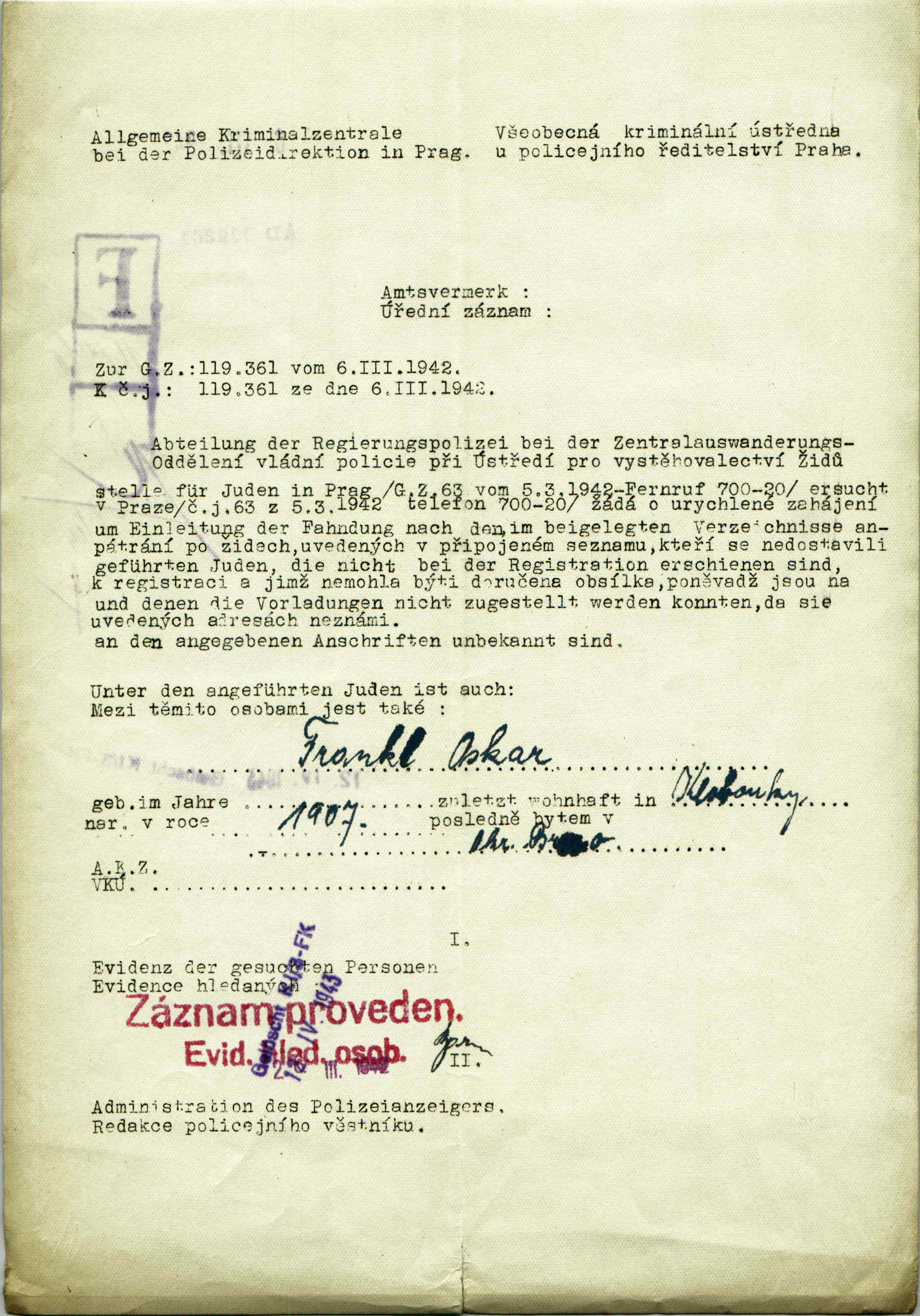 Nationalarchiv Prag > Polizei-Direktion Prag > 1941-1950 > F > Frankl Oskar