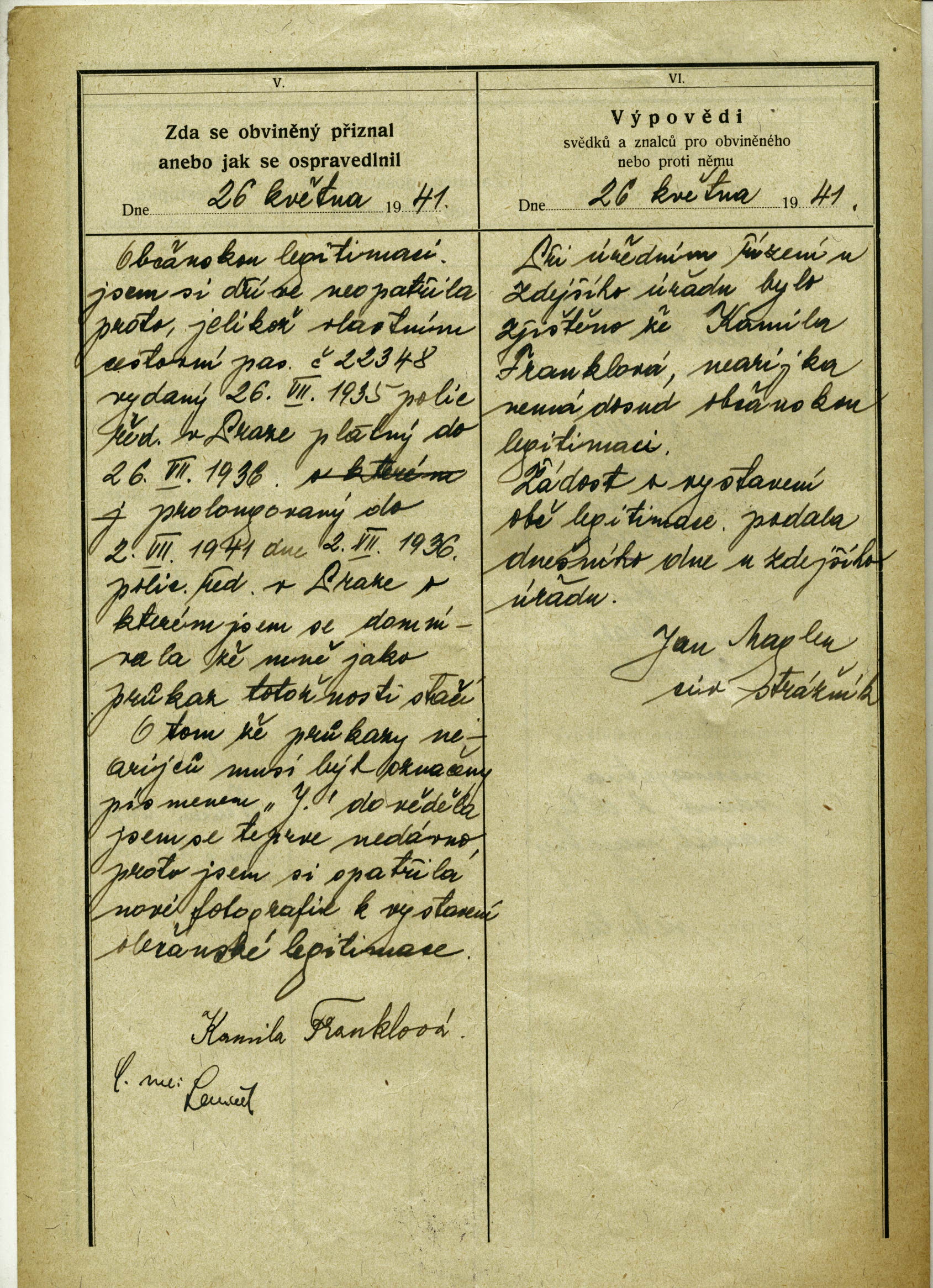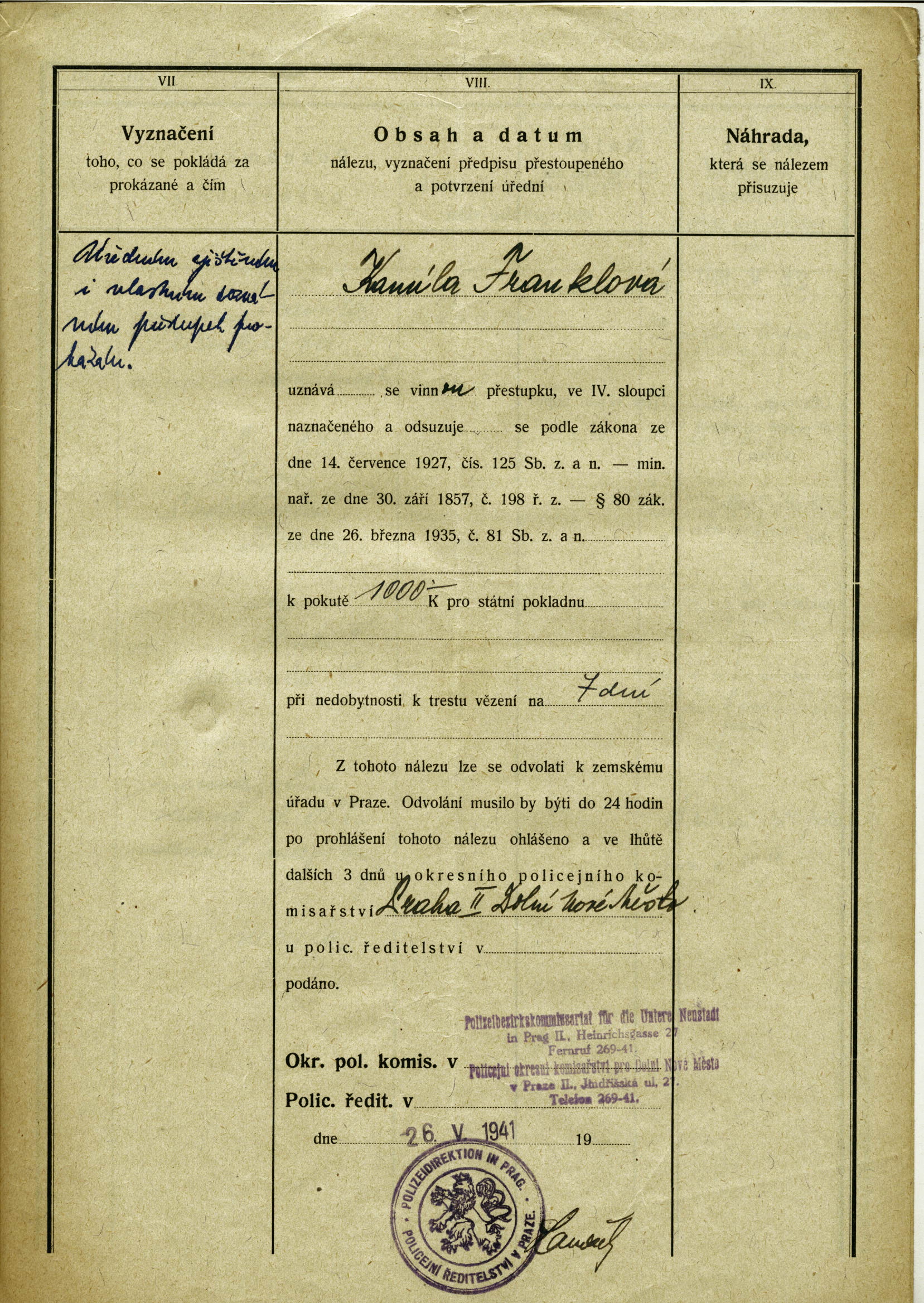 Nationalarchiv Prag > Polizei-Direktion Prag > 1941-1950 > F > Franklová Kamila