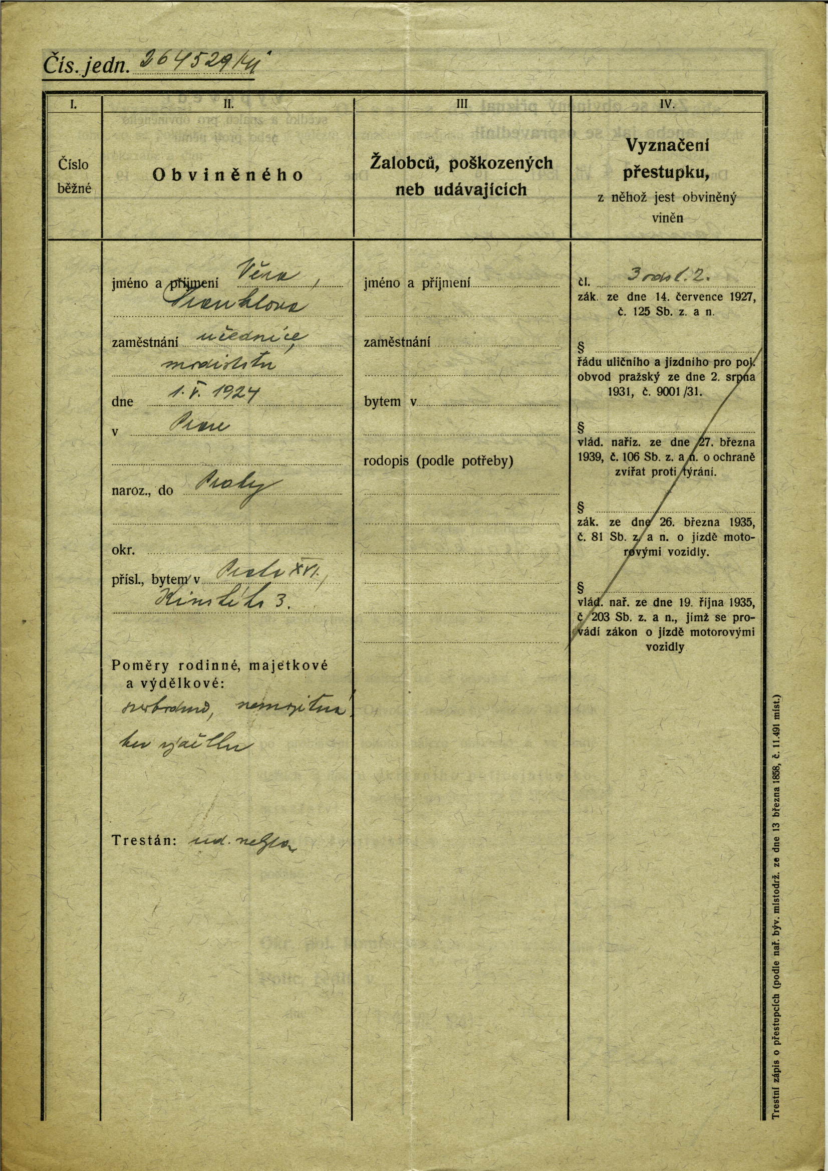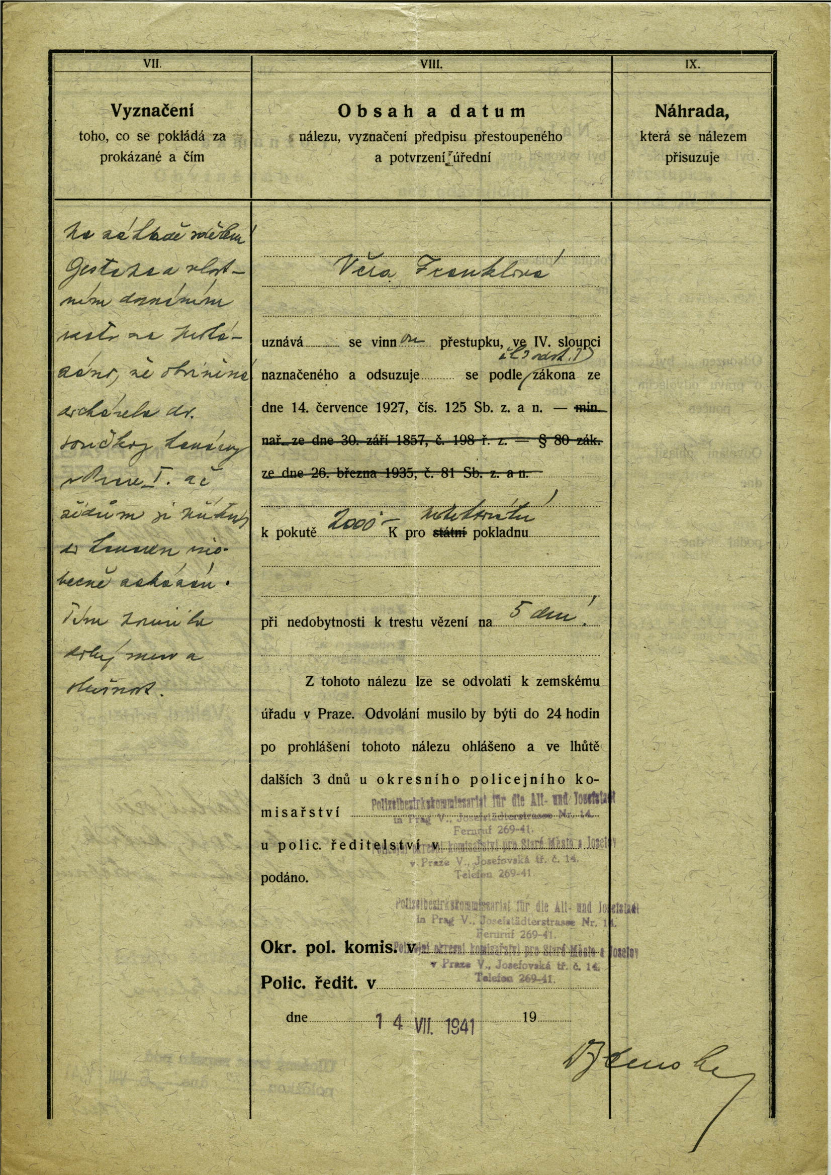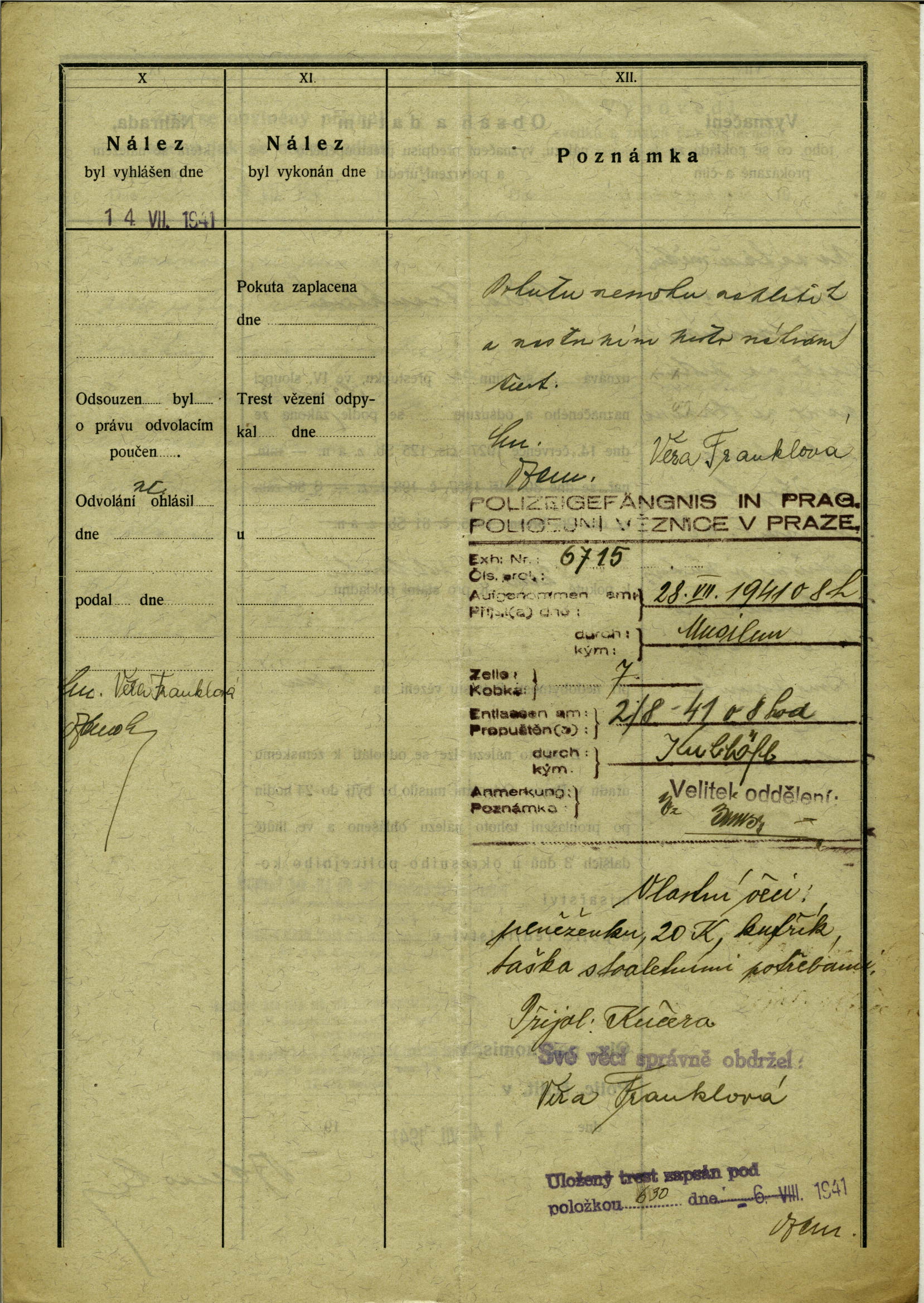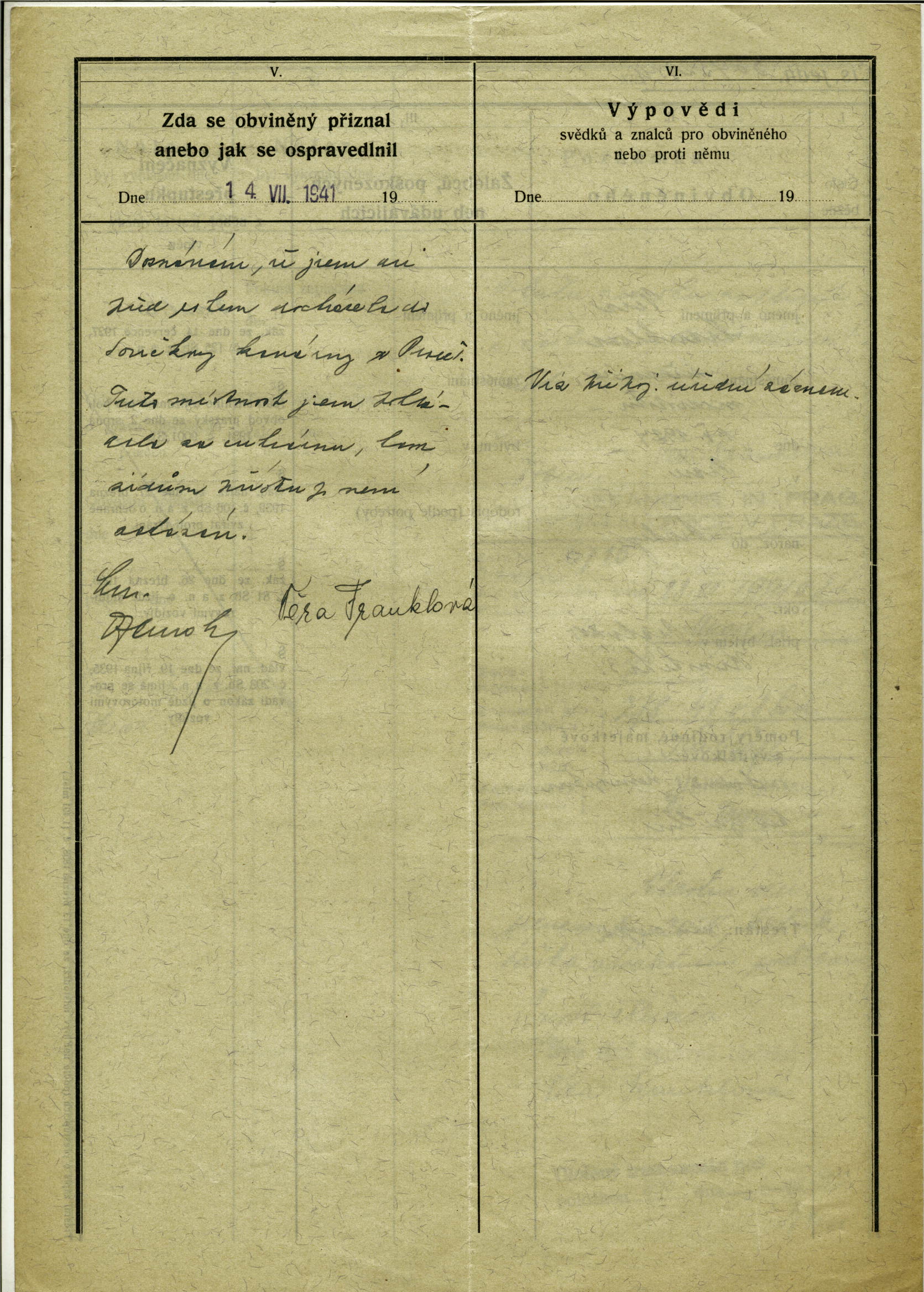 Nationalarchiv Prag > Polizei-Direktion Prag > 1941-1950 > F > Franklová Věra
