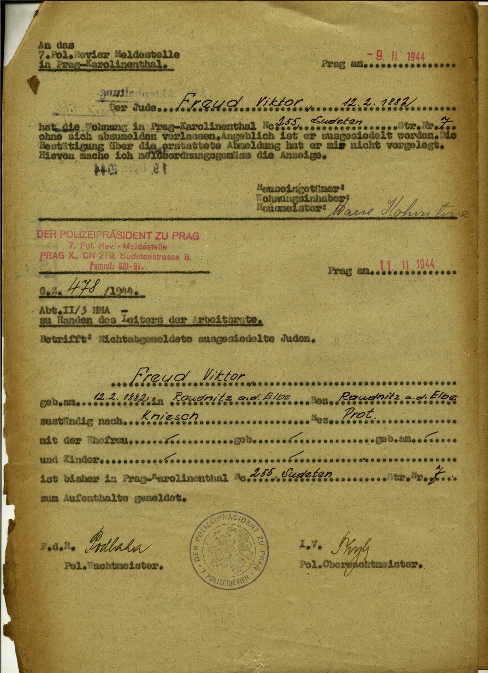 Nationalarchiv Prag > Polizei-Direktion Prag > 1941-1950 > F > Freud Viktor