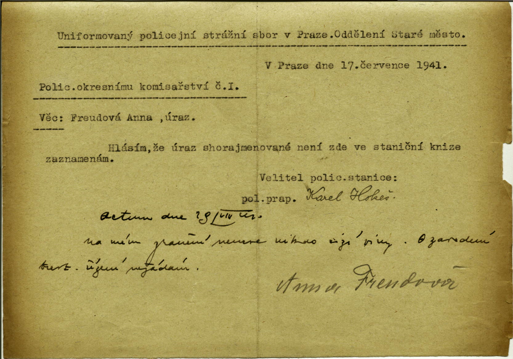 Nationalarchiv Prag > Polizei-Direktion Prag > 1941-1950 > F > Freudová Anna