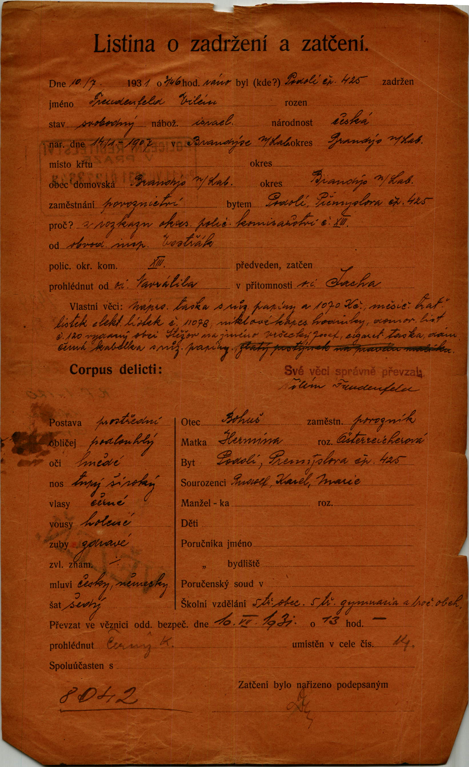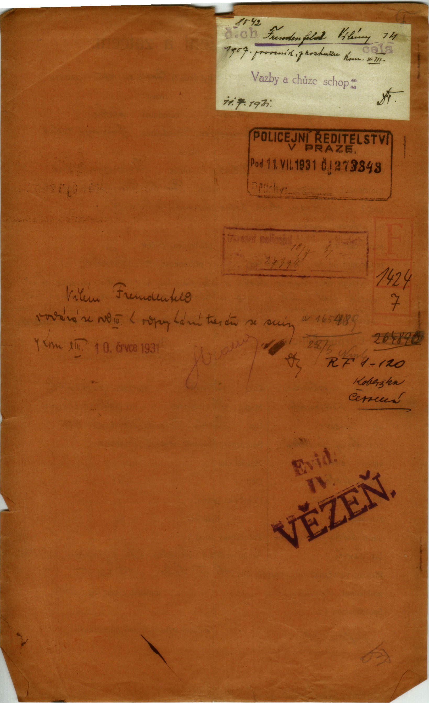Nationalarchiv Prag > Polizei-Direktion Prag > 1941-1950 > F > Freudenfeld Vilém