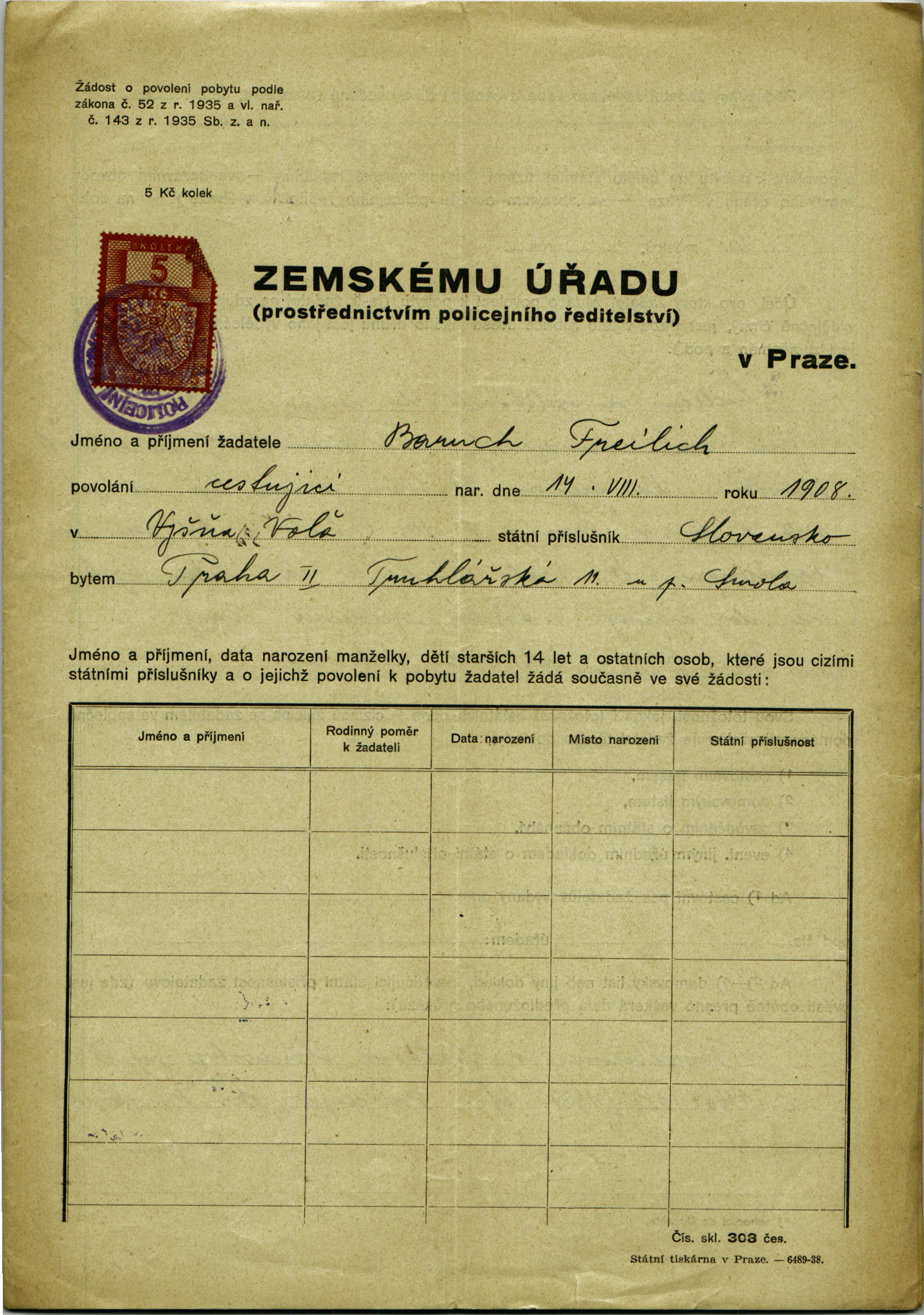 Nationalarchiv Prag > Polizei-Direktion Prag > 1941-1950 > F > Freilich Baruch