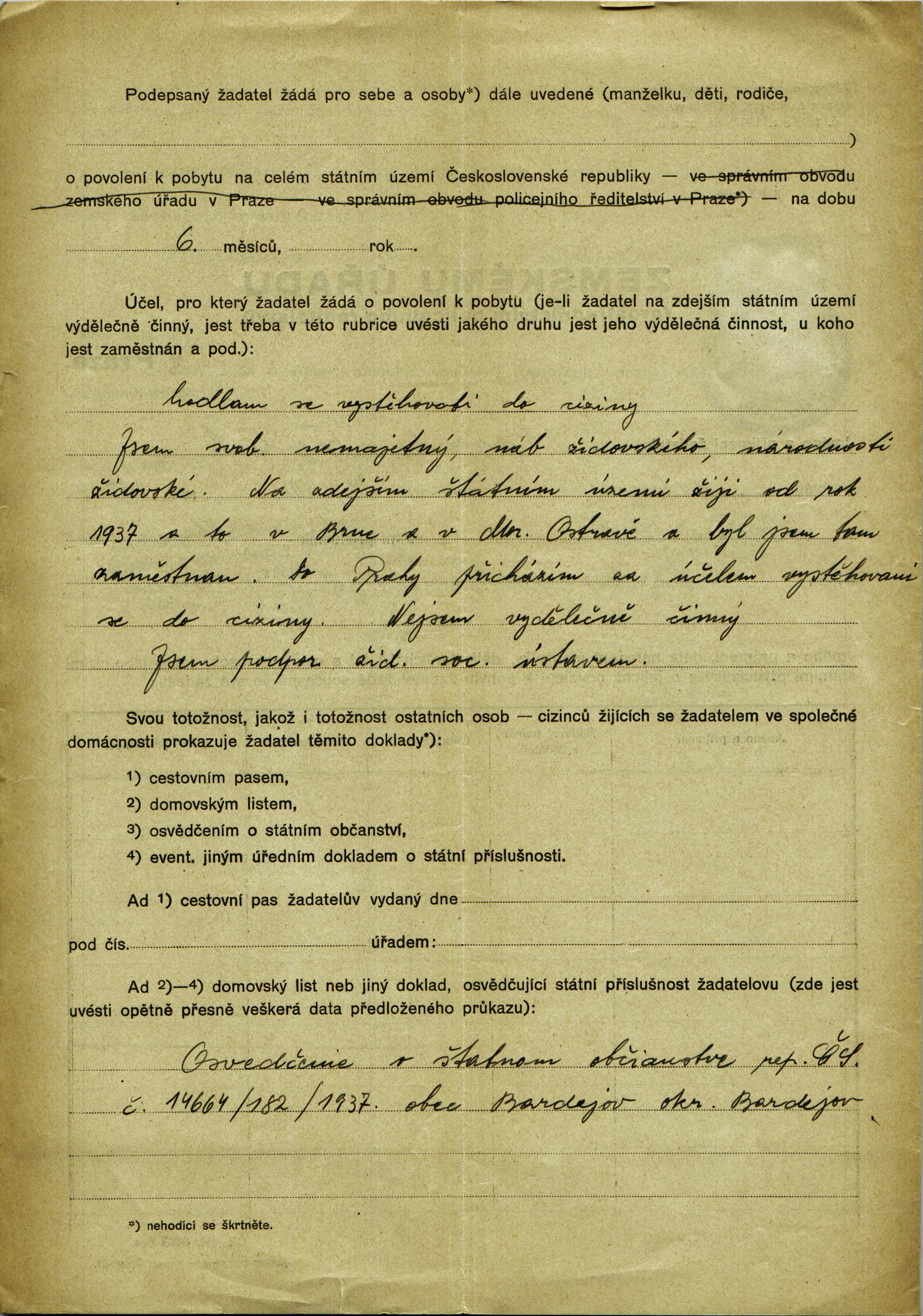 Freilich Baruch: Residence permit application
