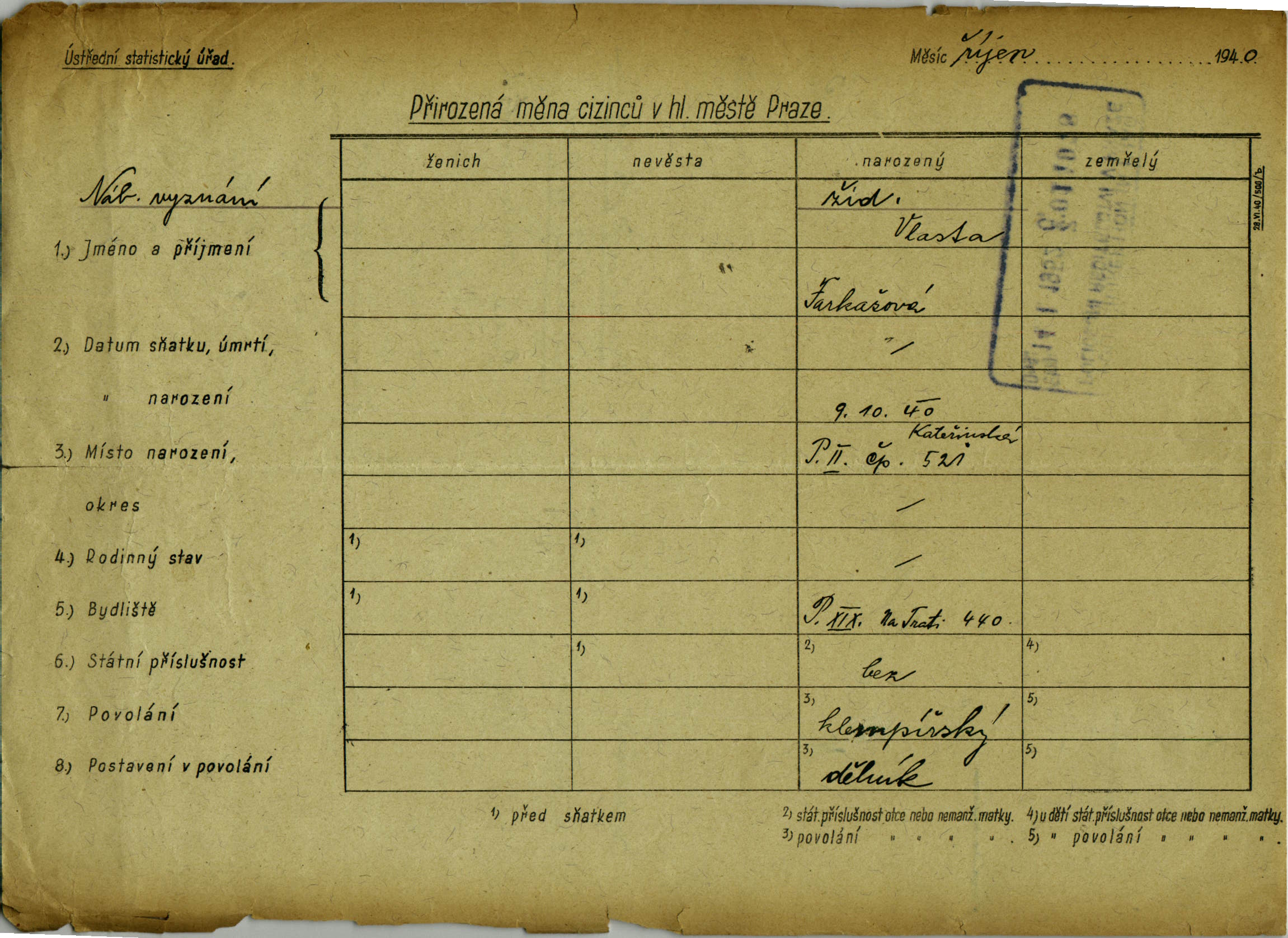 Farkašová Vlasta: Dokument Ústředního statistického úřadu