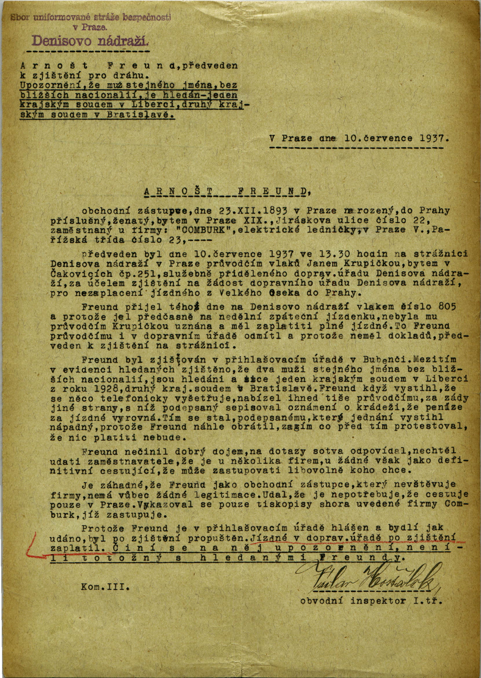 Nationalarchiv Prag > Polizei-Direktion Prag > 1941-1950 > F > Freund Arnošt