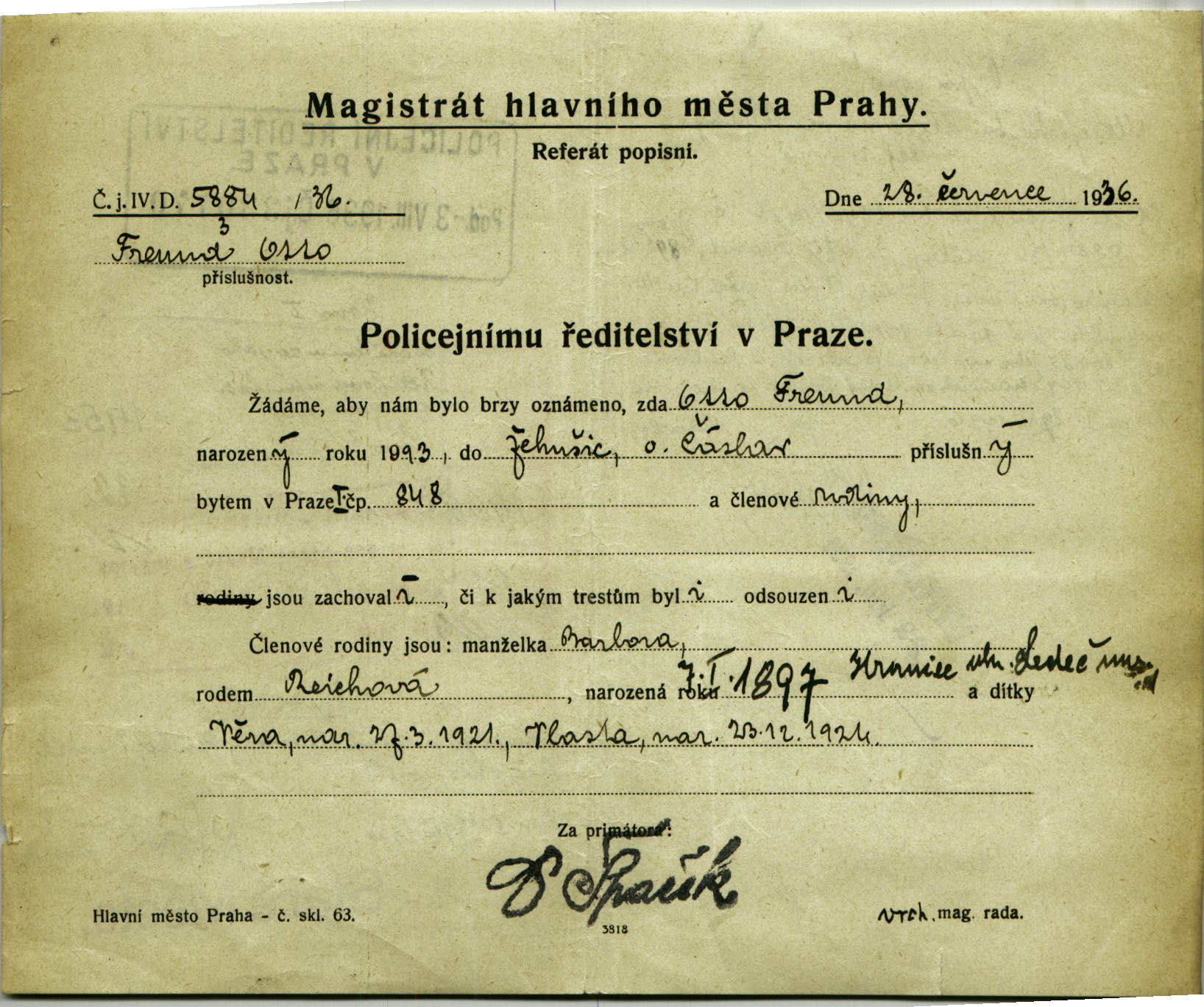 Nationalarchiv Prag > Polizei-Direktion Prag > 1941-1950 > F > Freund Otto