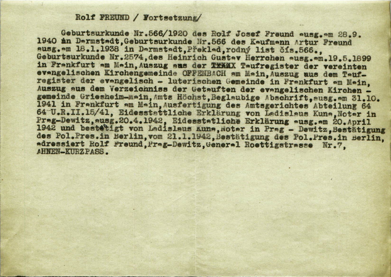 Nationalarchiv Prag > Polizei-Direktion Prag > 1941-1950 > F > Freund Rolf Josef