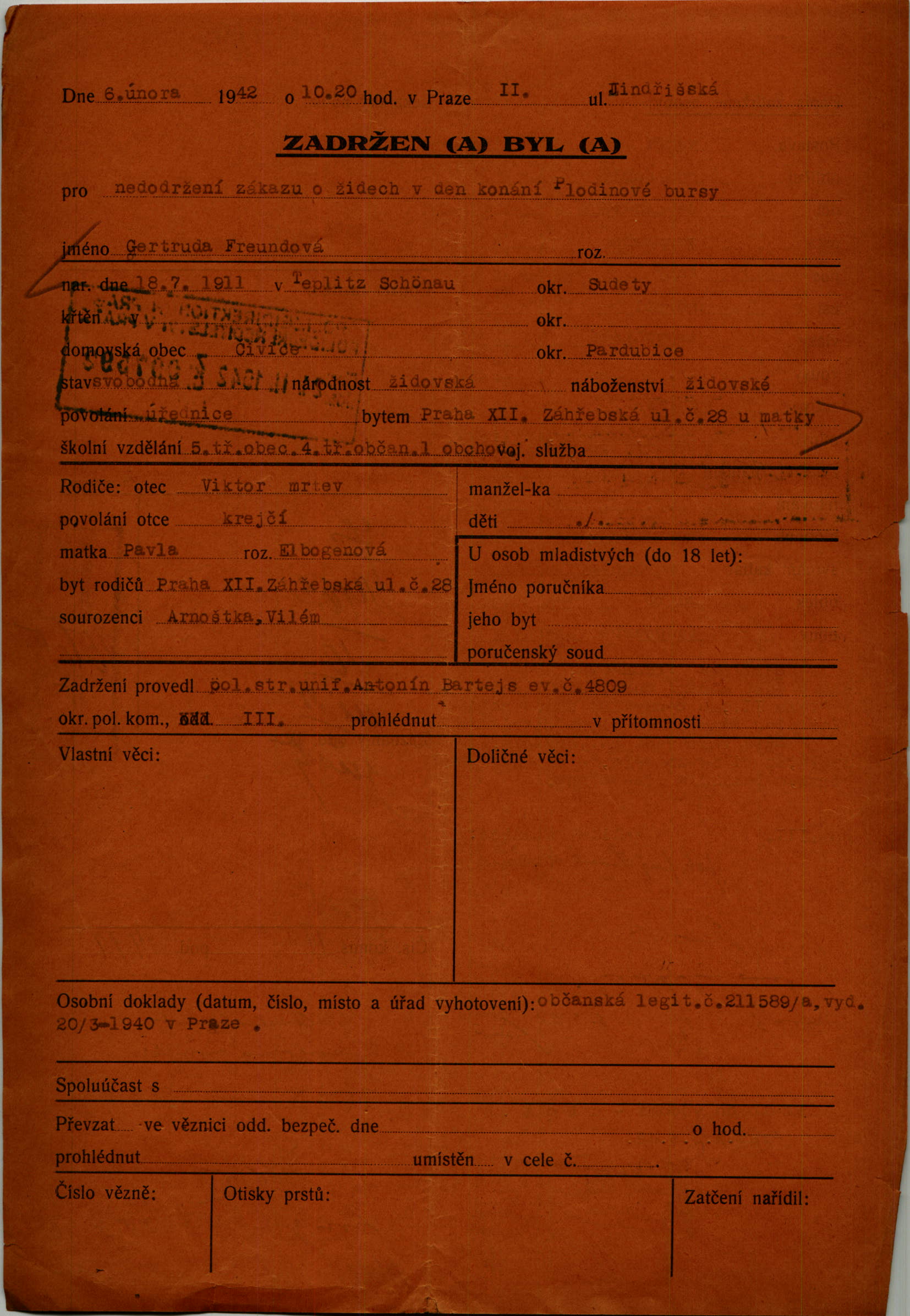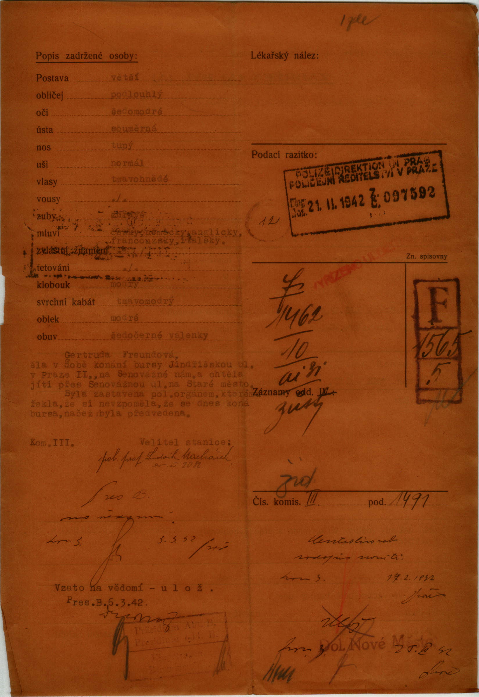 Nationalarchiv Prag > Polizei-Direktion Prag > 1941-1950 > F > Freundová Gertruda