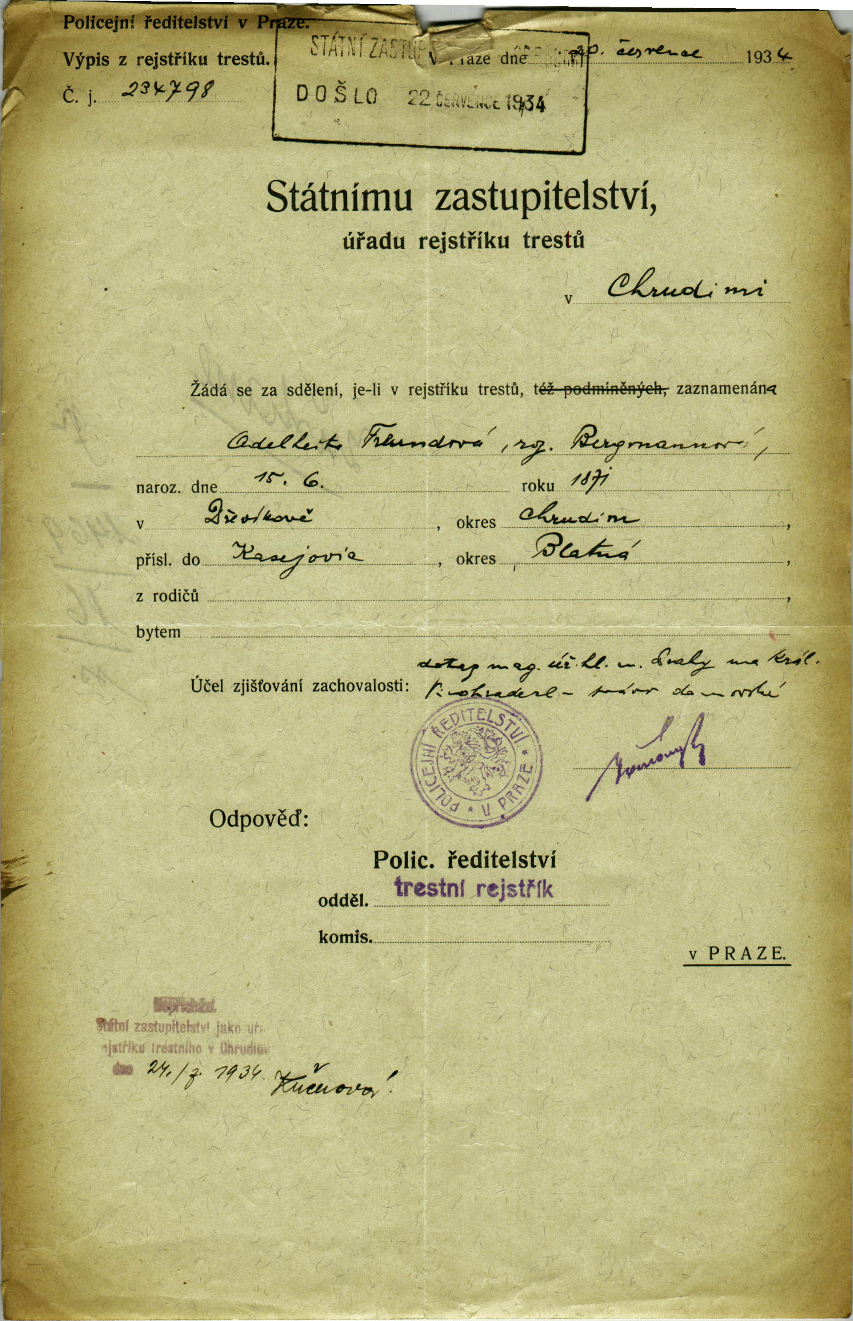 Nationalarchiv Prag > Polizei-Direktion Prag > 1941-1950 > F > Freundová Adéla