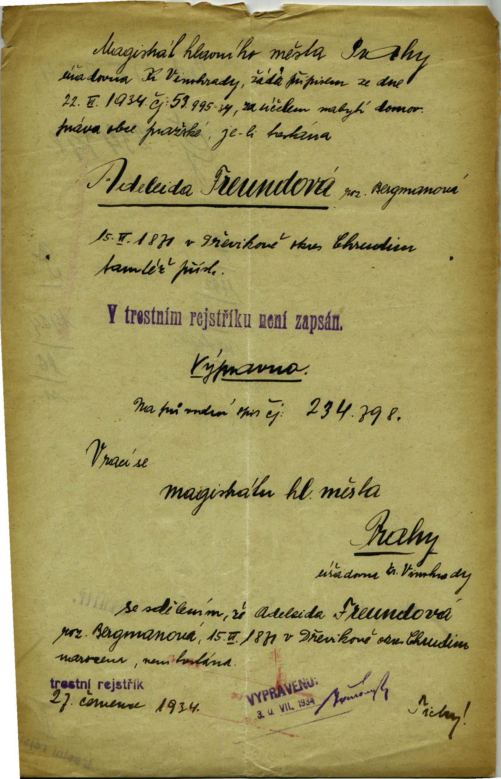Nationalarchiv Prag > Polizei-Direktion Prag > 1941-1950 > F > Freundová Adéla