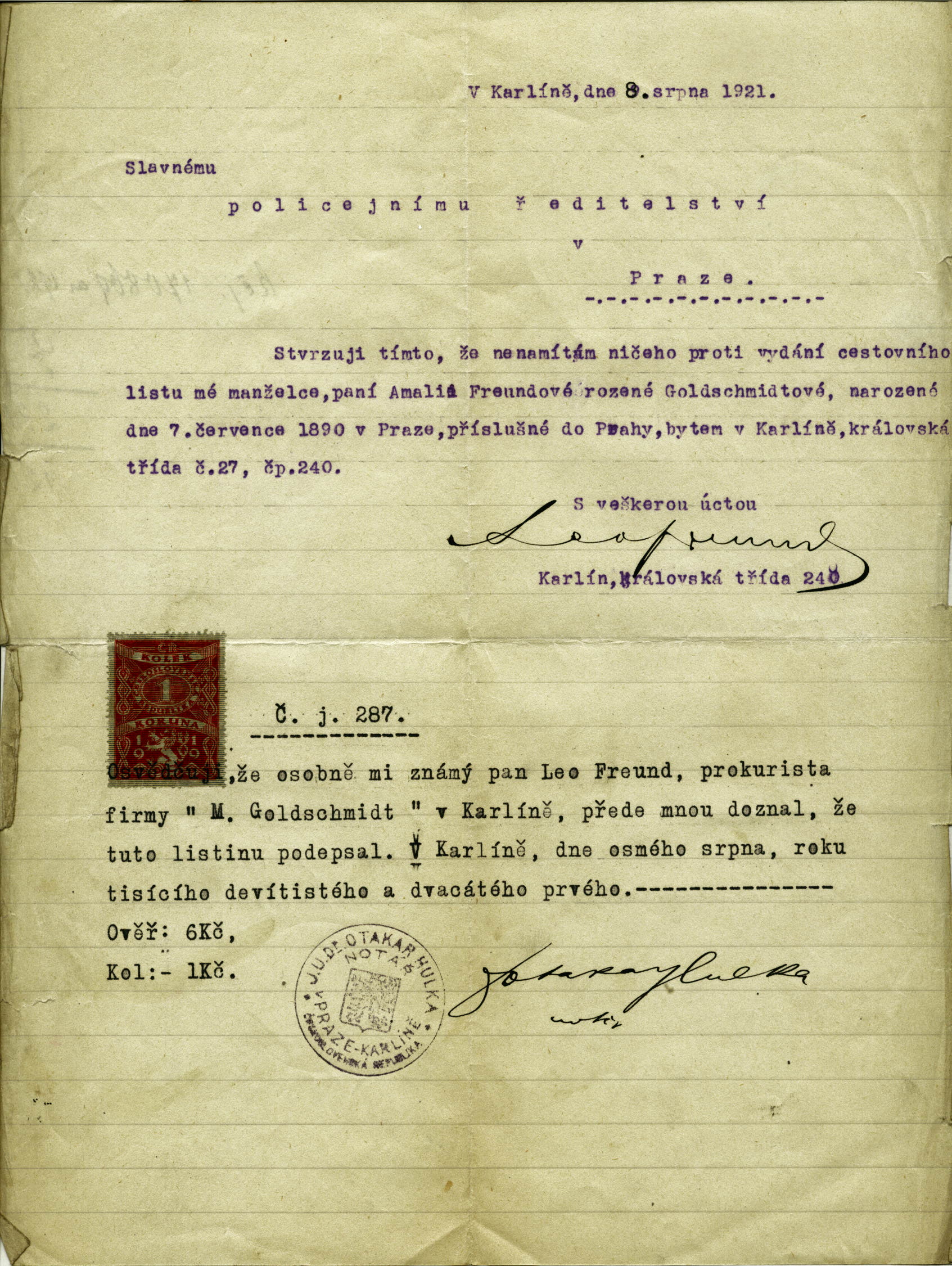 Freundová Amálie: Souhlas s vydáním cestovního pasu