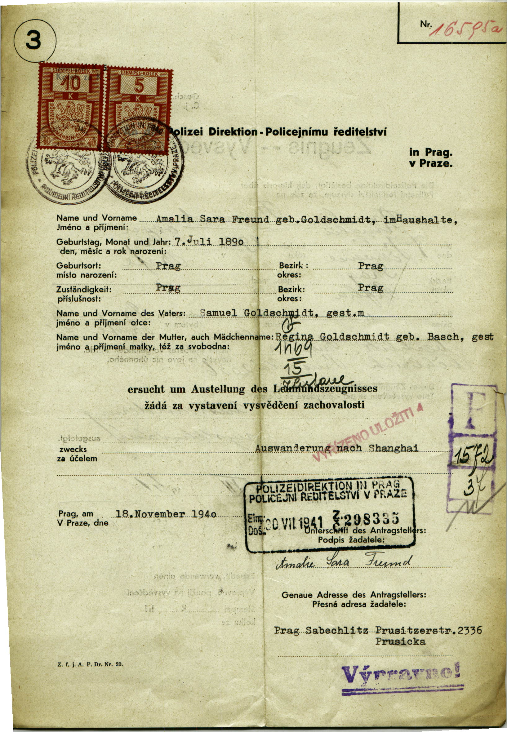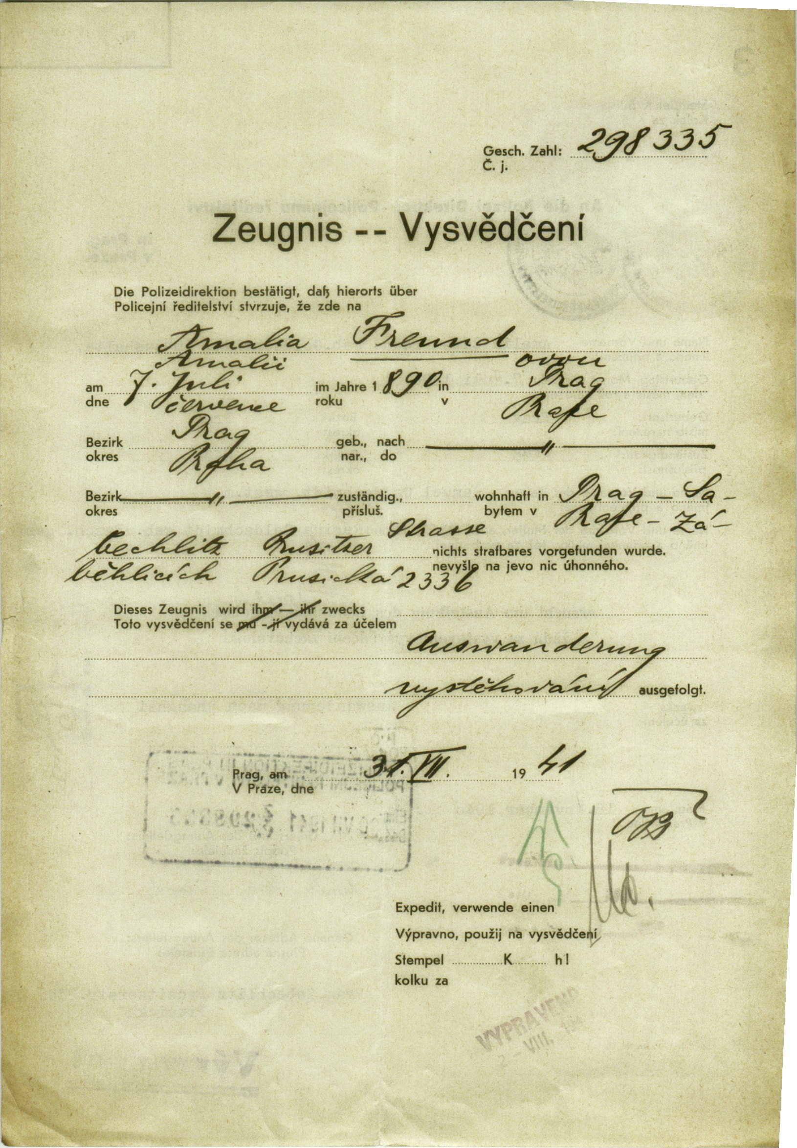 Nationalarchiv Prag > Polizei-Direktion Prag > 1941-1950 > F > Freundová Amálie