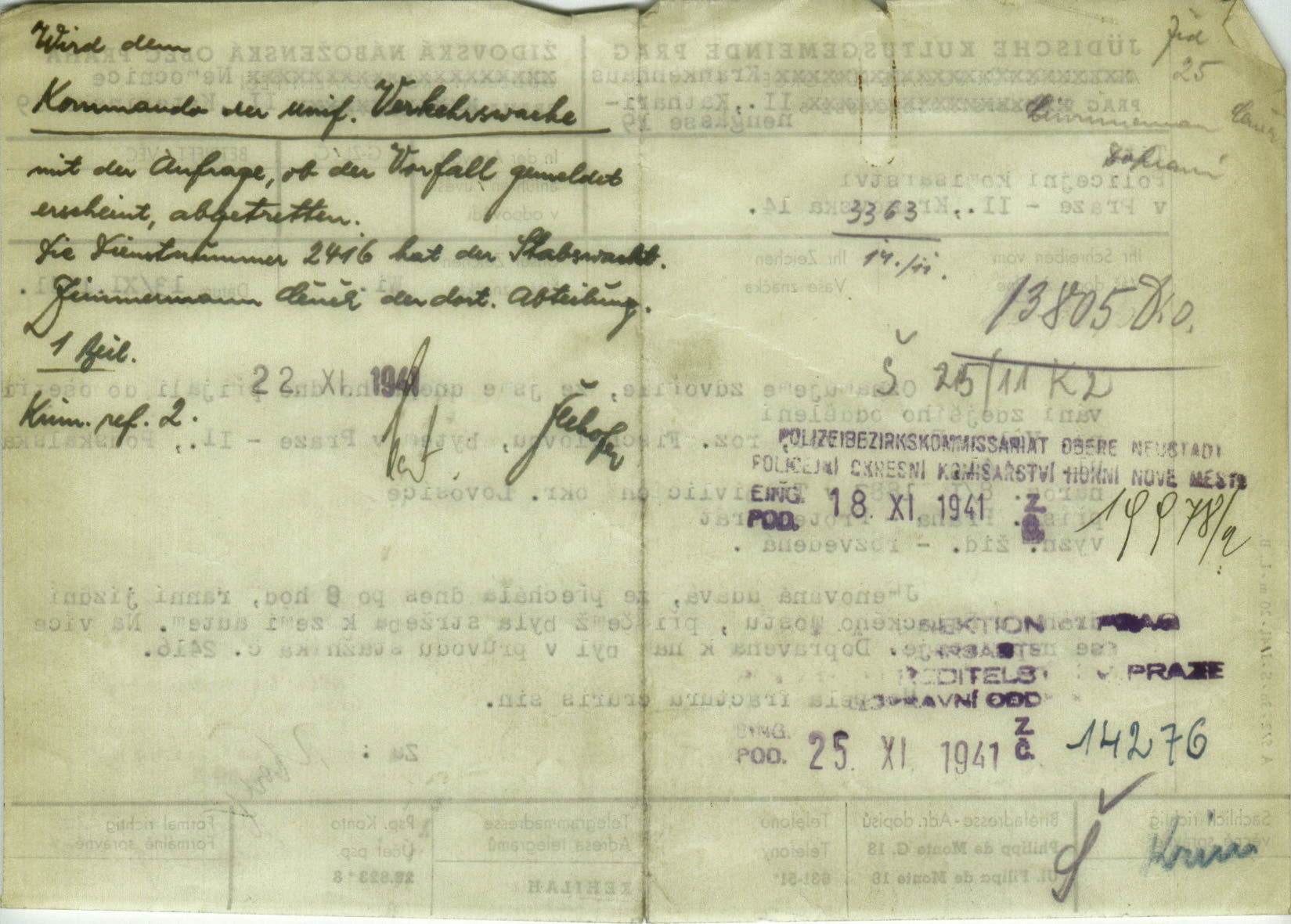 For publication purposes, contact the National Archives in Prague, where the original document is located. The document was digitized by the Terezín Initiative Institute, the Terezín Album project.