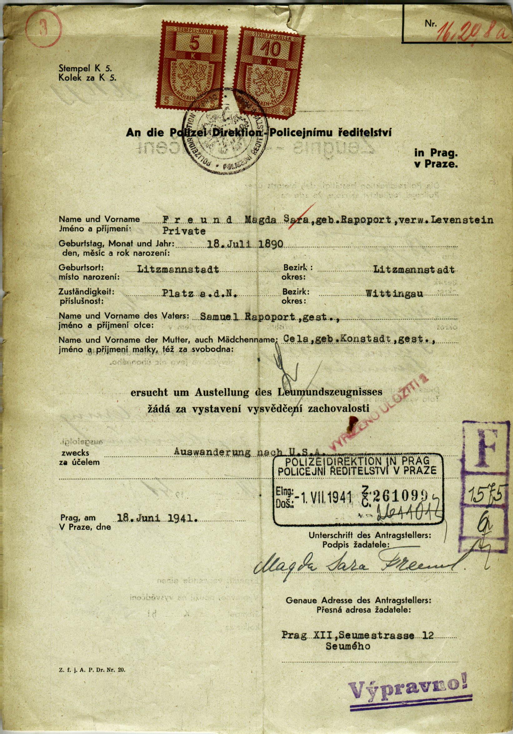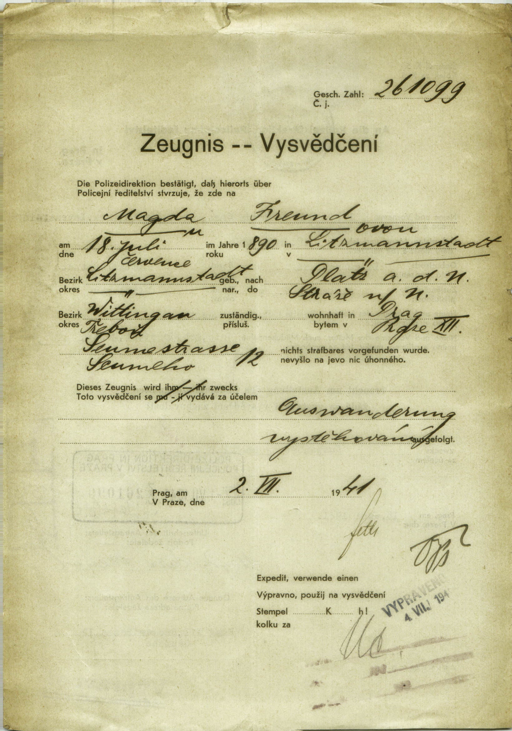 Nationalarchiv Prag > Polizei-Direktion Prag > 1941-1950 > F > Freundová Magda
