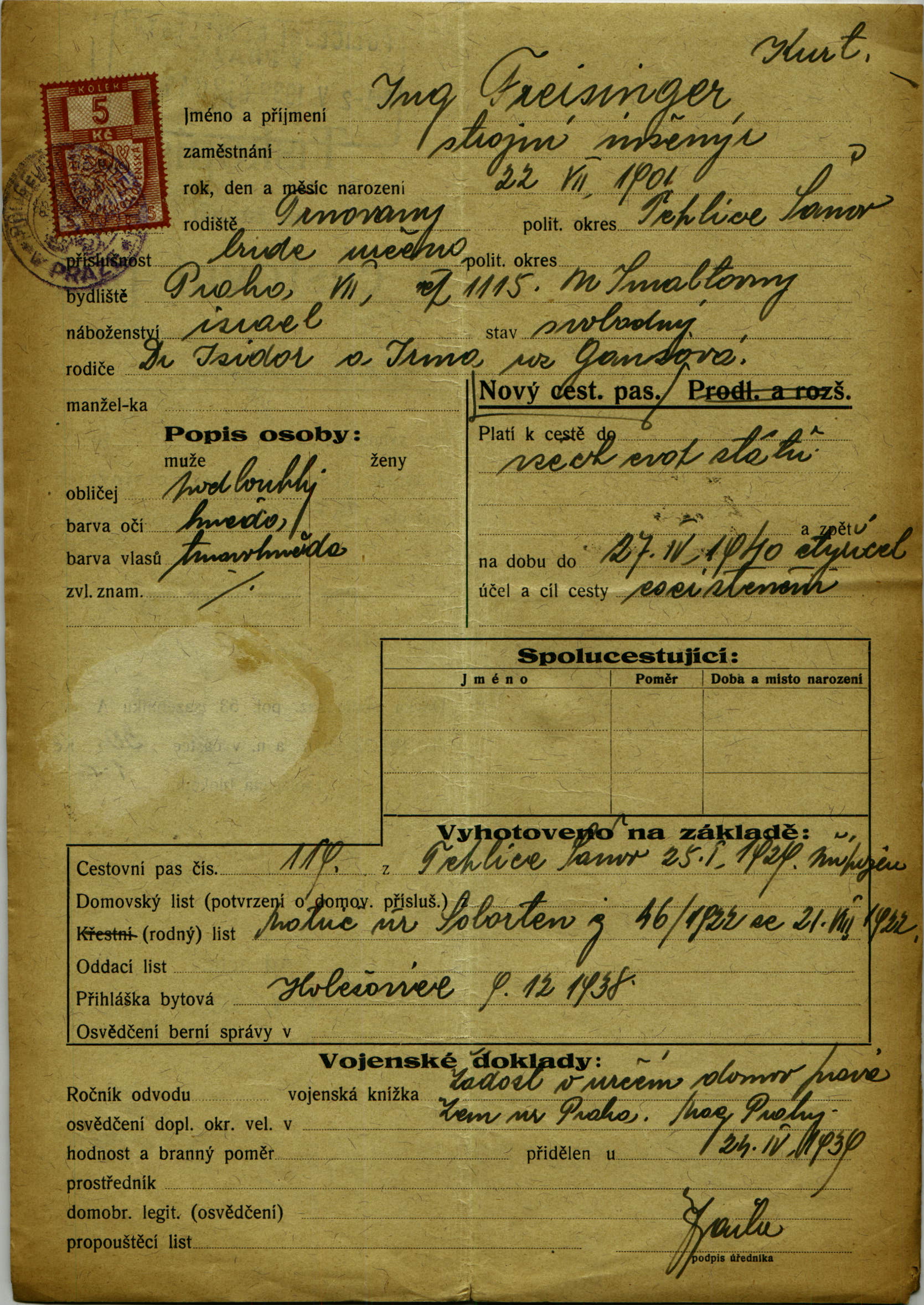 Freisinger Kurt: Passport application