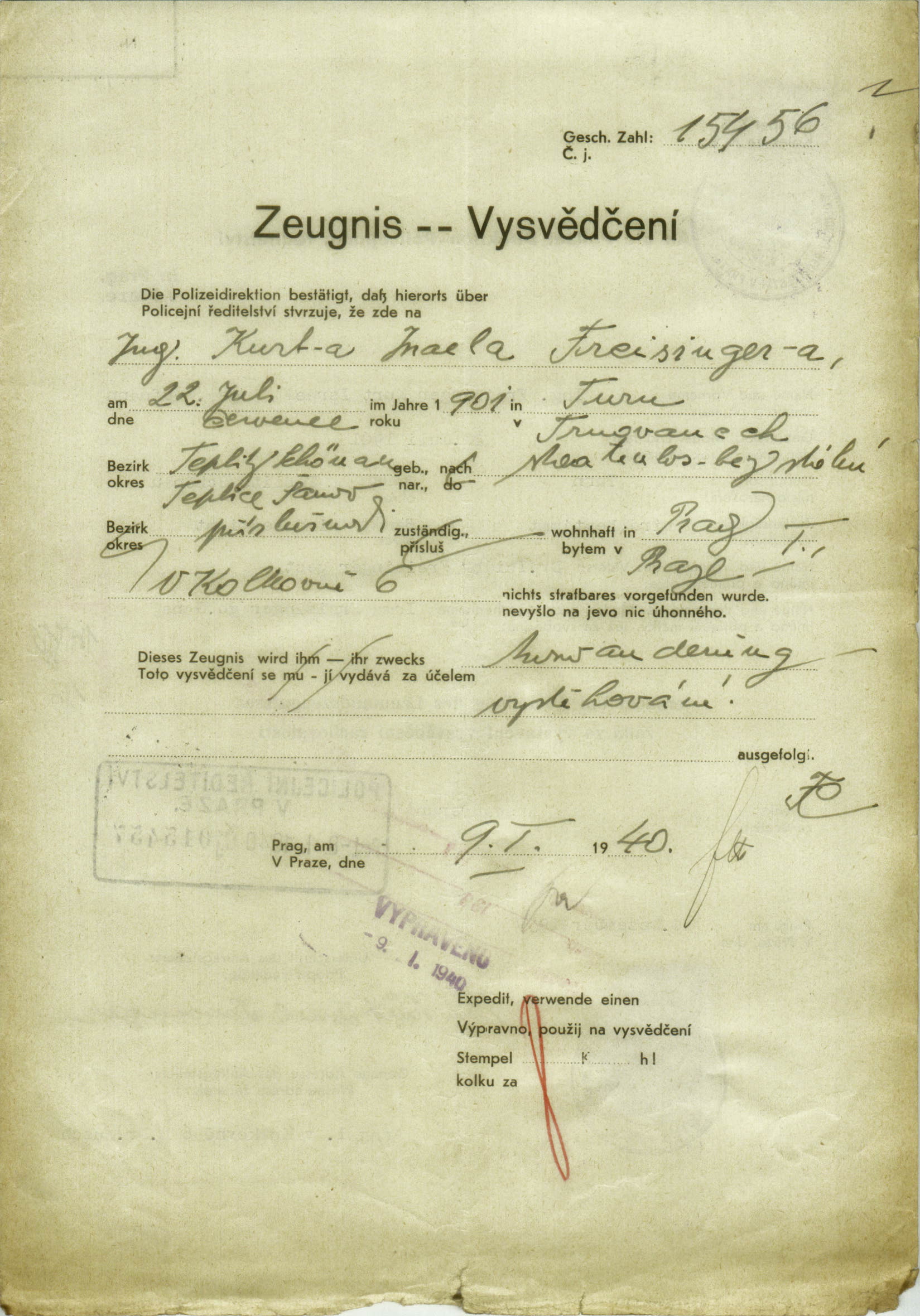 Nationalarchiv Prag > Polizei-Direktion Prag > 1941-1950 > F > Freisinger Kurt