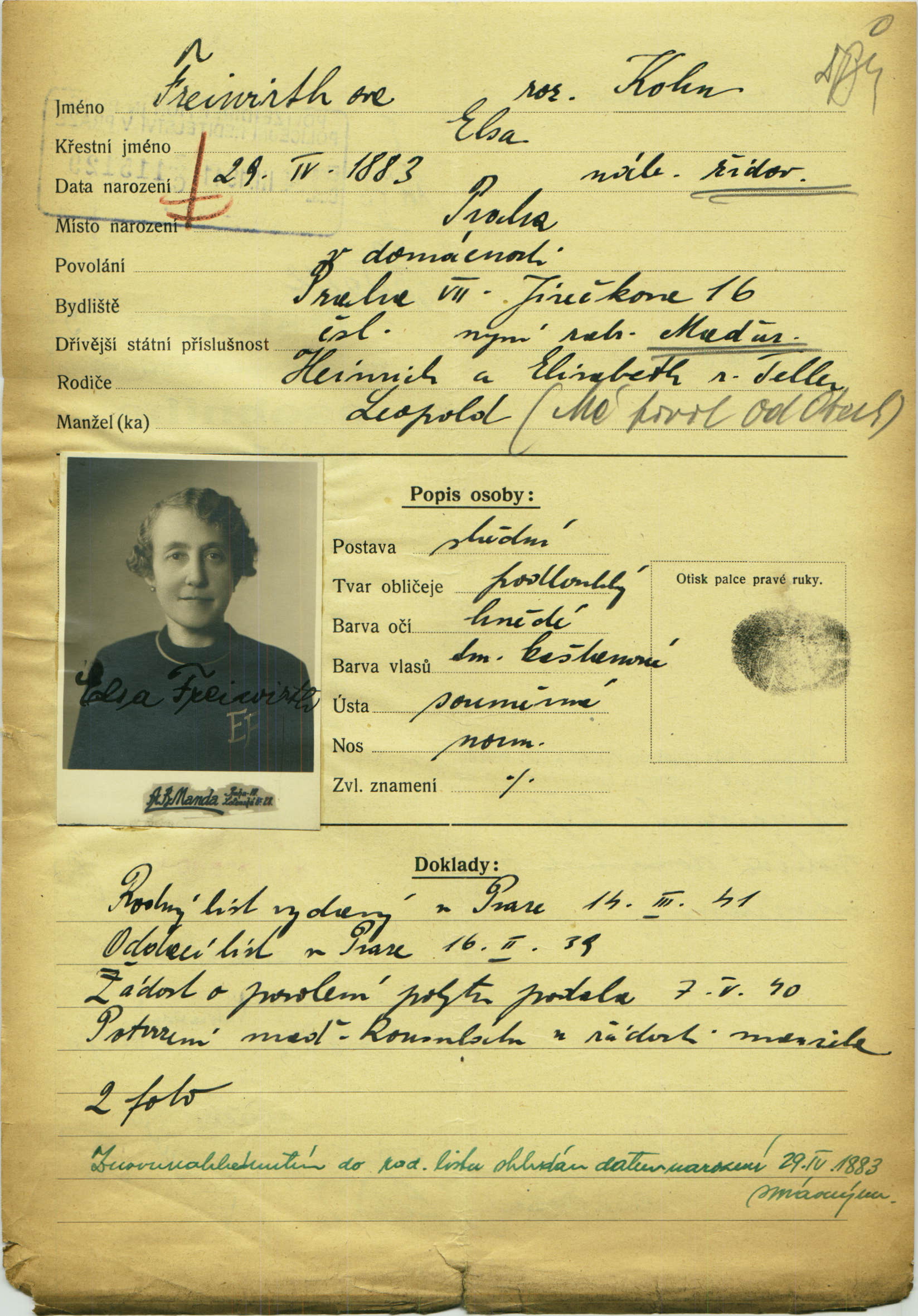 Nationalarchiv Prag > Polizei-Direktion Prag > 1941-1950 > F > Freiwirthová Elsa