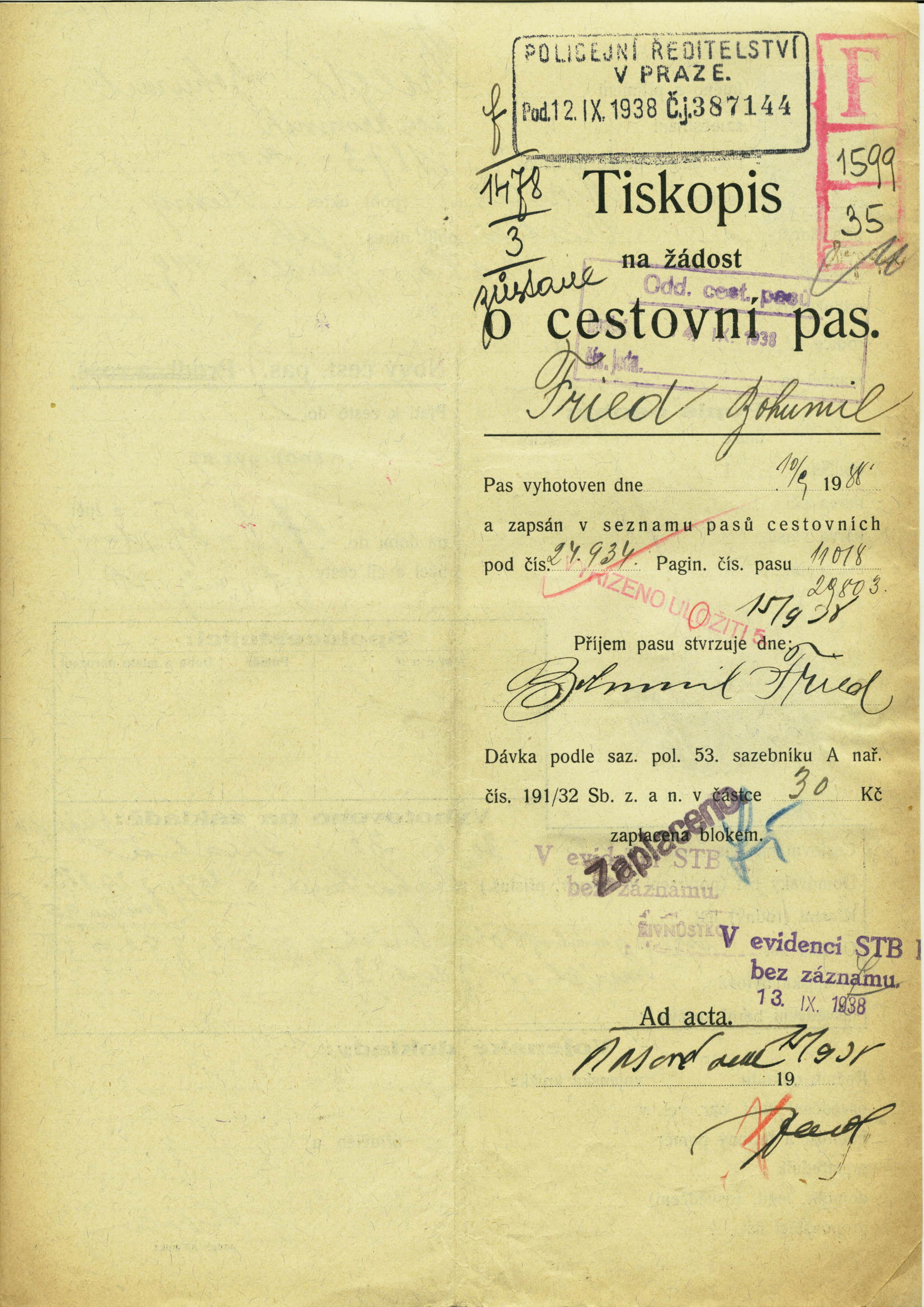 Nationalarchiv Prag > Polizei-Direktion Prag > 1941-1950 > F > Fried Bohumil