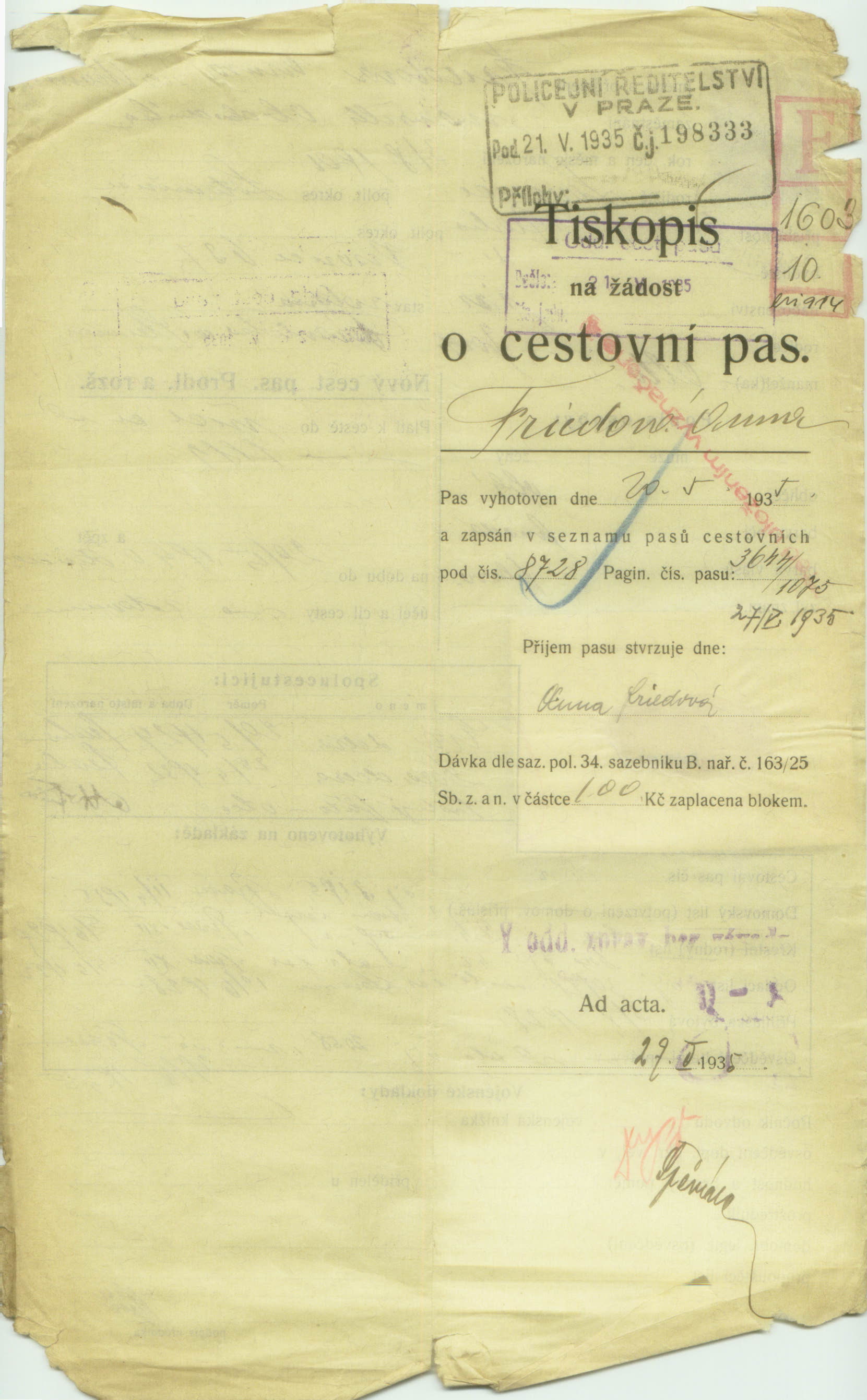 For publication purposes, contact the National Archives in Prague, where the original document is located. The document was digitized by the Terezín Initiative Institute, the Terezín Album project.