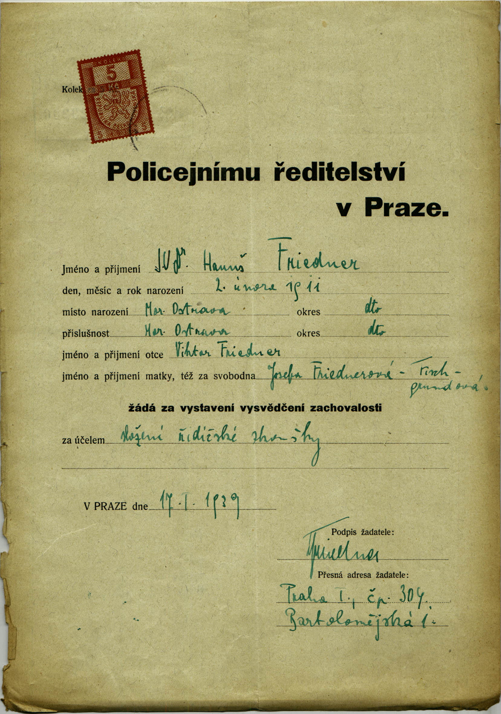 Nationalarchiv Prag > Polizei-Direktion Prag > 1941-1950 > F > Friedner Hanuš