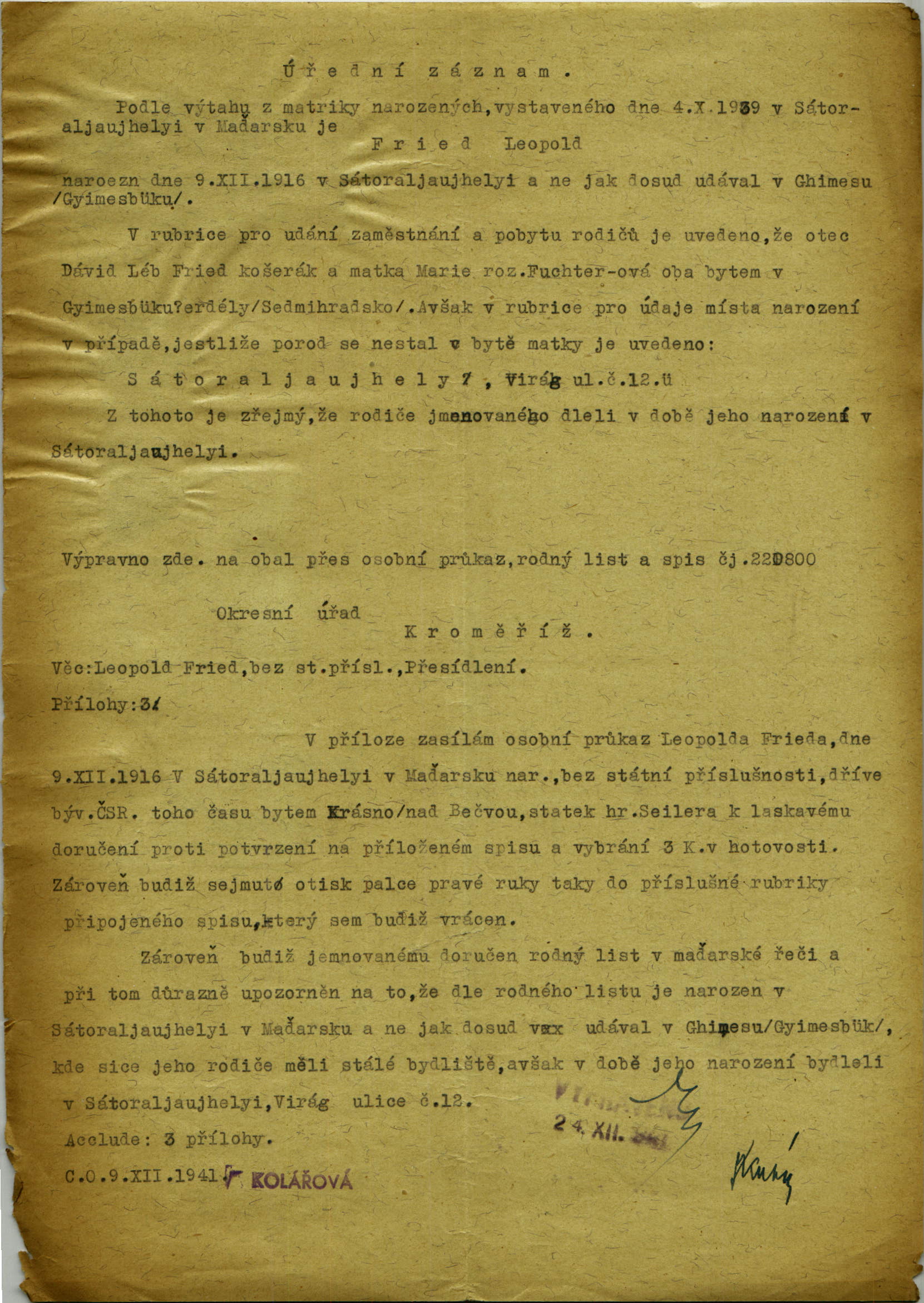 Nationalarchiv Prag > Polizei-Direktion Prag > 1941-1950 > F > Fried Leopold