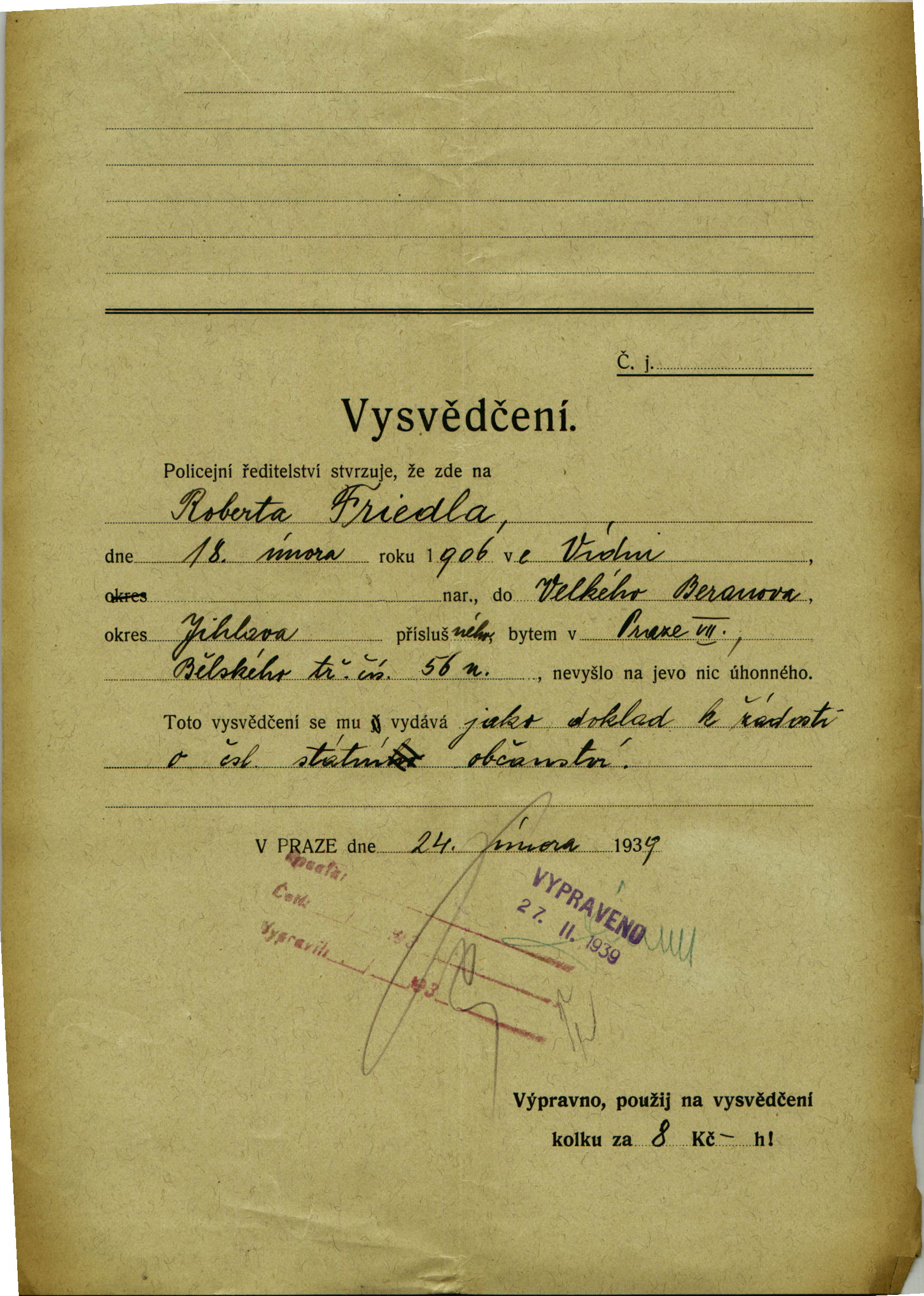 Nationalarchiv Prag > Polizei-Direktion Prag > 1941-1950 > F > Friedl Robert