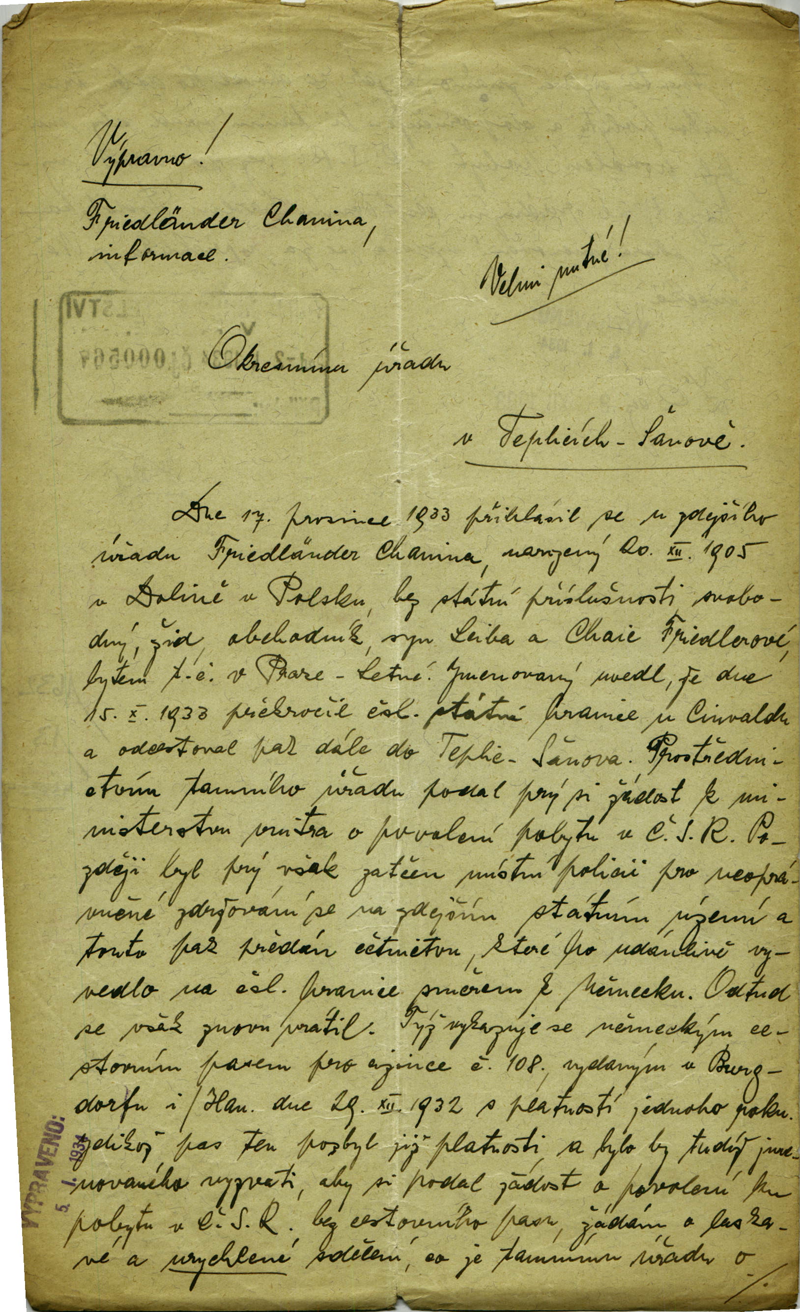Nationalarchiv Prag > Polizei-Direktion Prag > 1941-1950 > F > Friedländer Chanina
