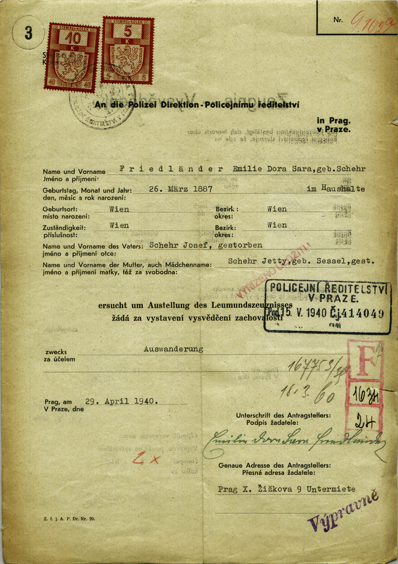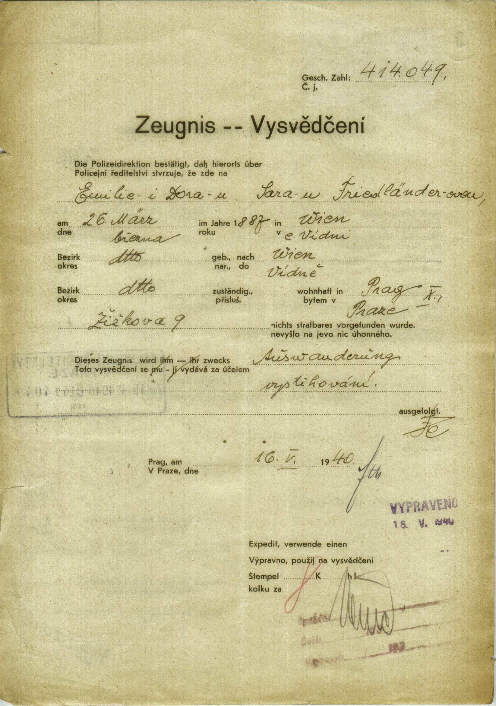 Nationalarchiv Prag > Polizei-Direktion Prag > 1941-1950 > F > Friedländerová Emilie