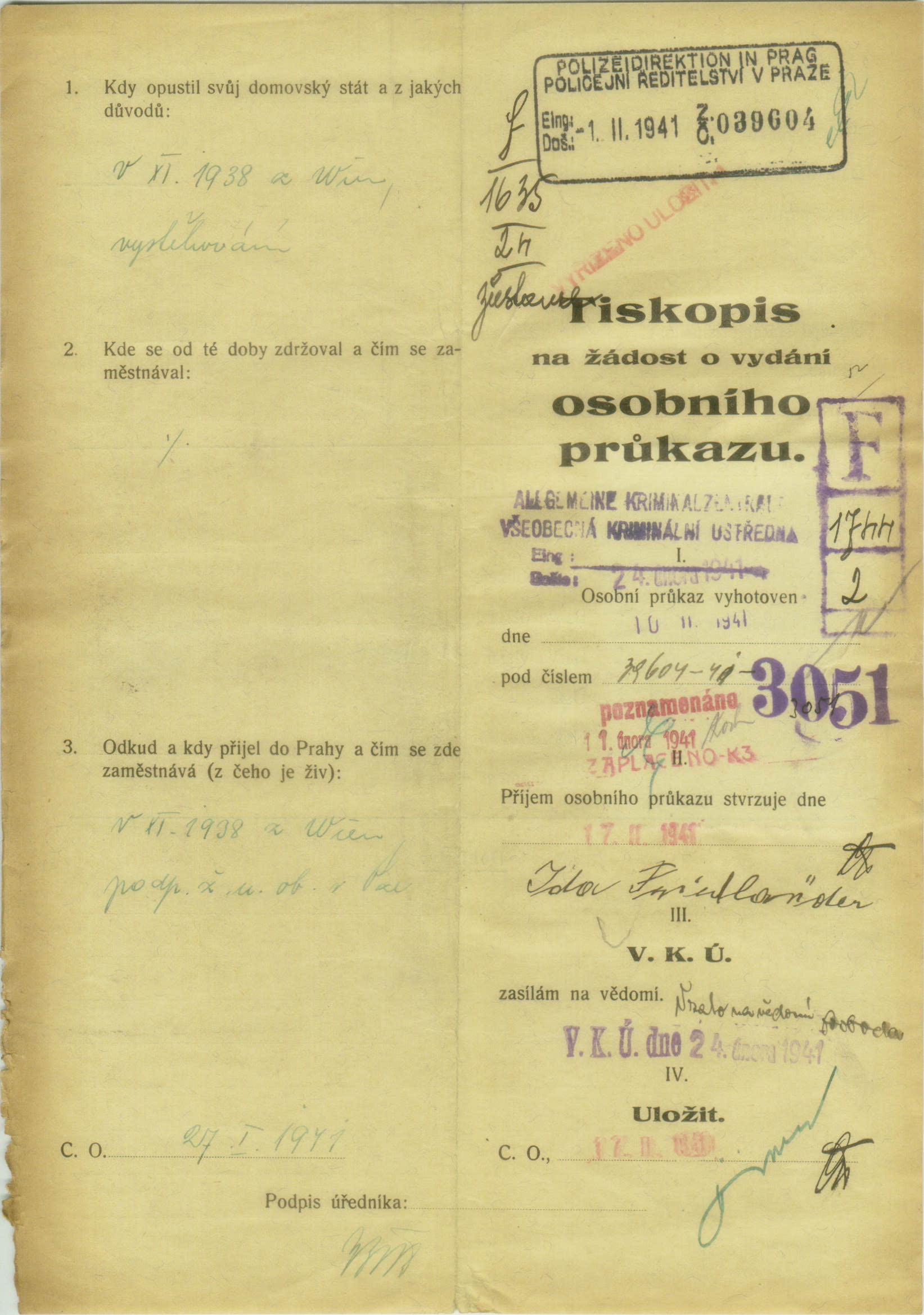 Nationalarchiv Prag > Polizei-Direktion Prag > 1941-1950 > F > Friedländerová Ida