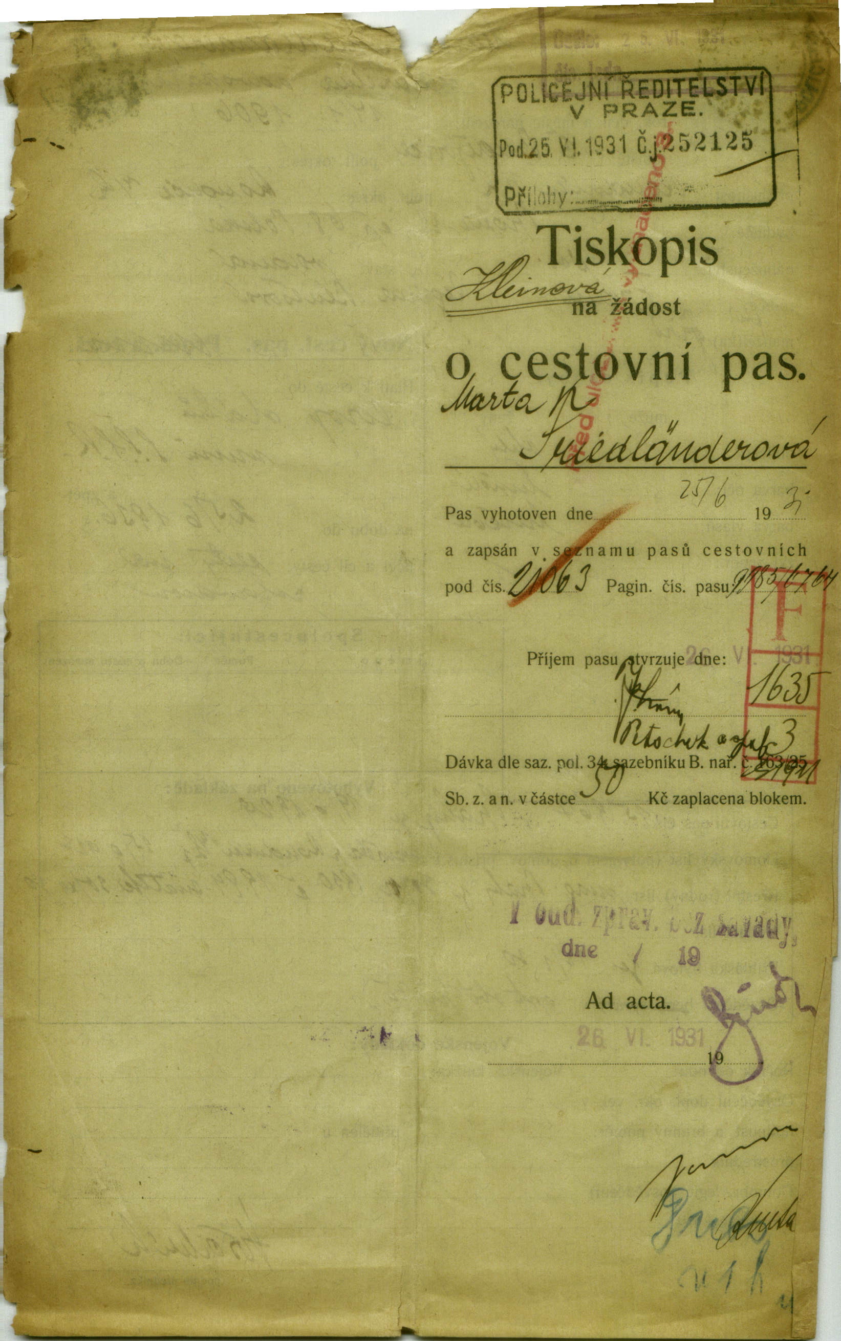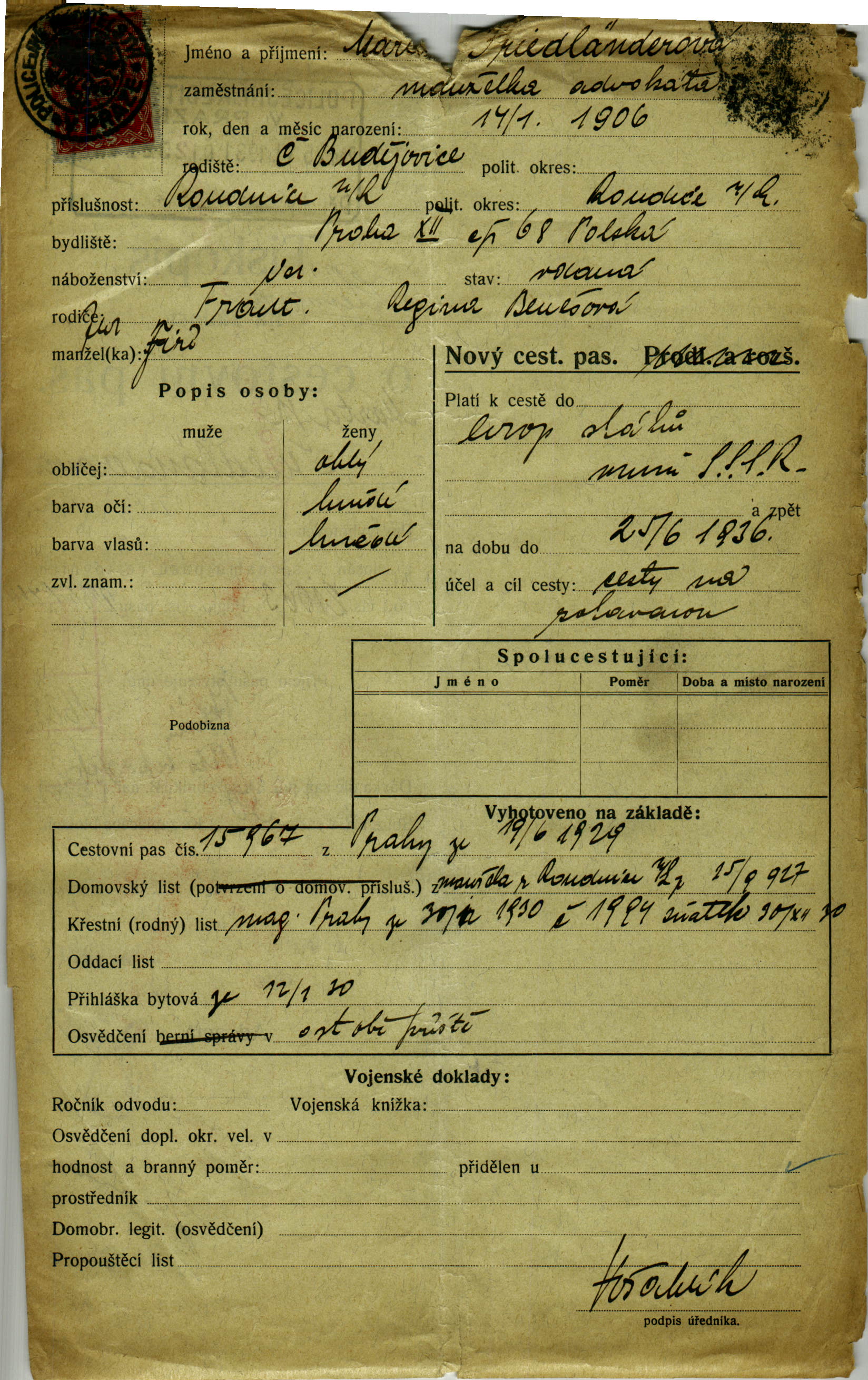 Friedländerová Marta: Passport application