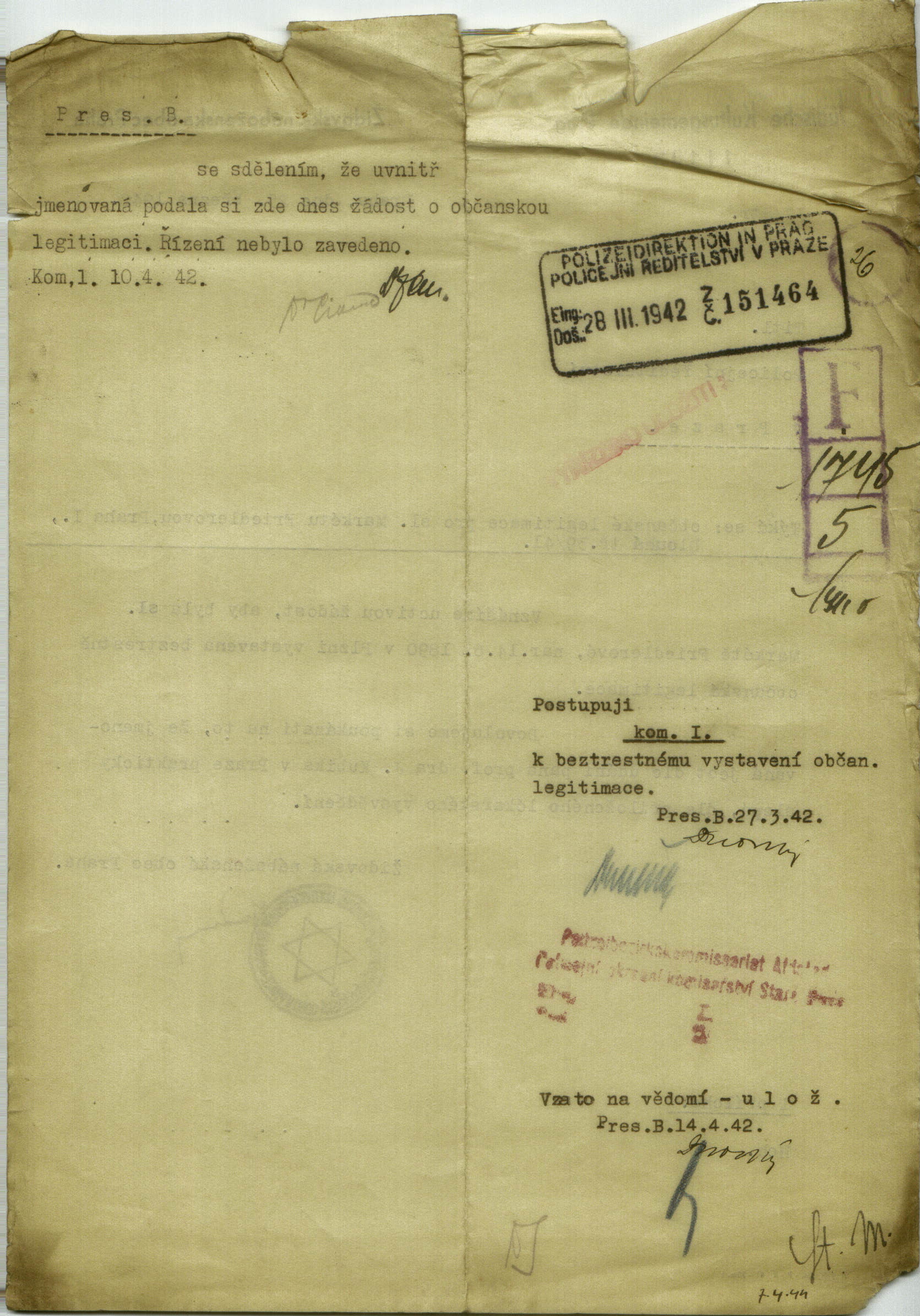 For publication purposes, contact the National Archives in Prague, where the original document is located. The document was digitized by the Terezín Initiative Institute, the Terezín Album project.