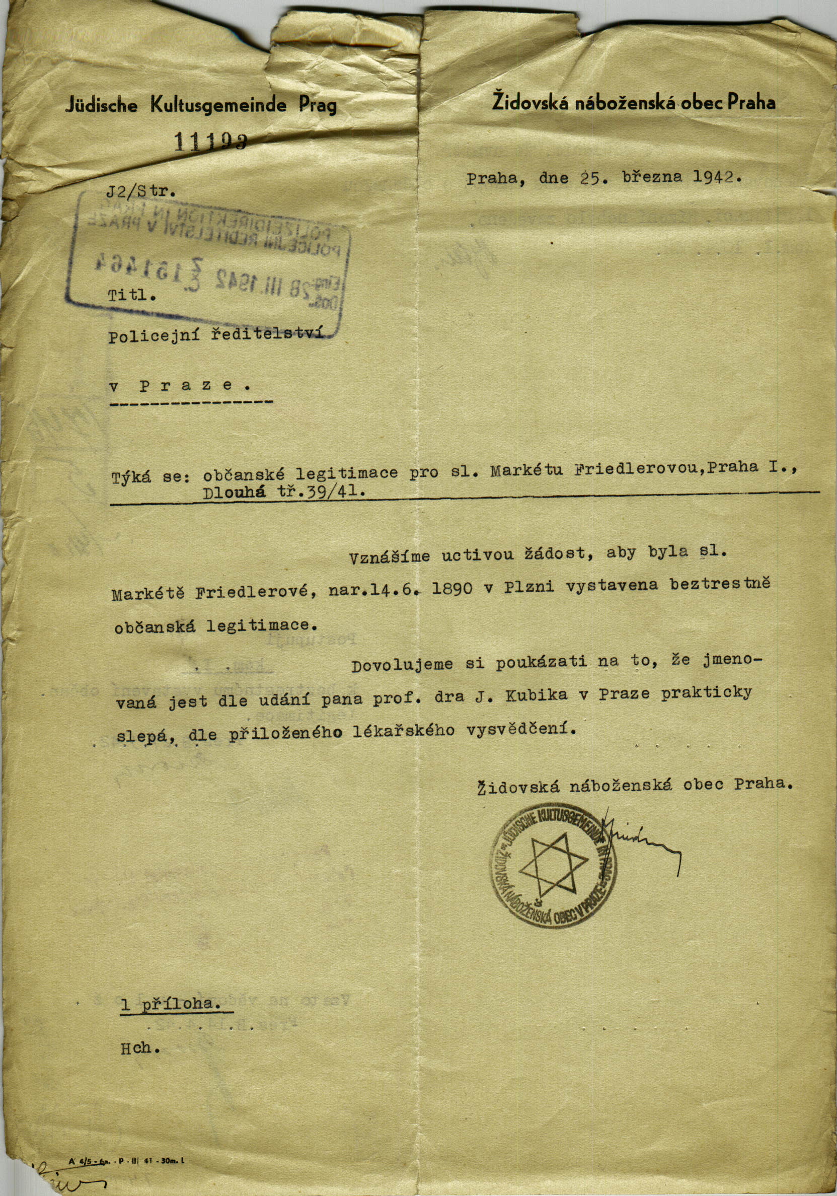 Friedlerová Gréta: Žádost o beztrestné vydání občanské legitimace