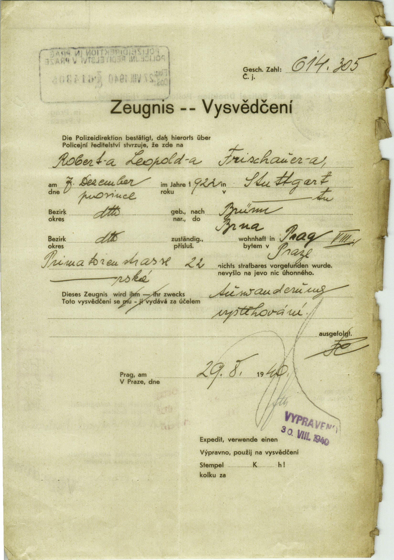 Nationalarchiv Prag > Polizei-Direktion Prag > 1941-1950 > F > Frischauer Robert