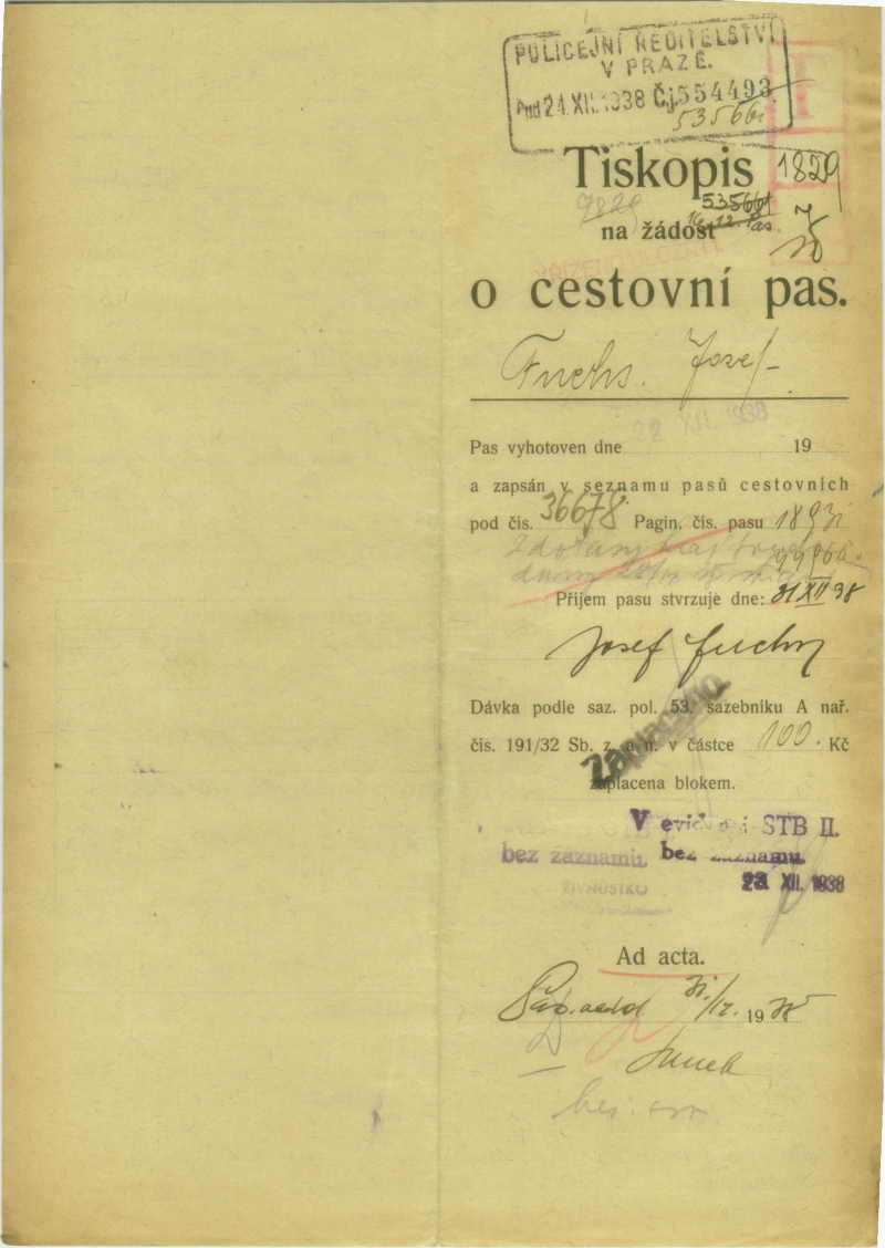 Fuchs Josef: Passport application