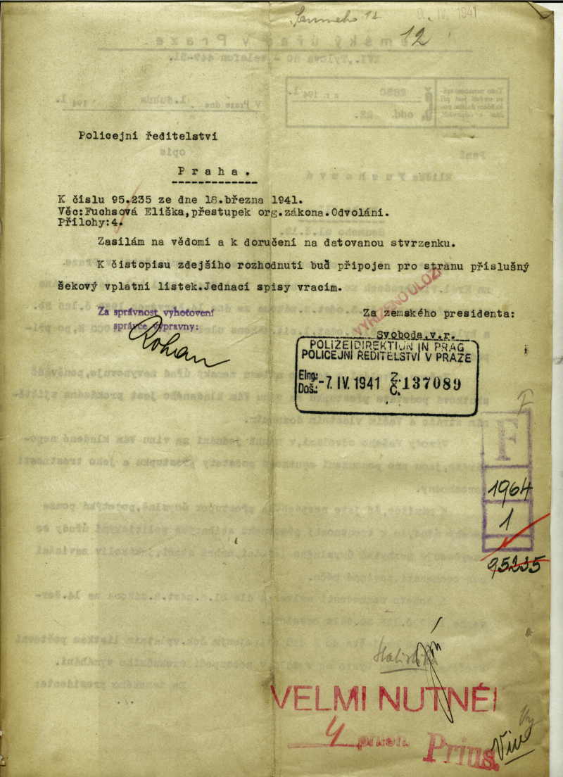 Nationalarchiv Prag > Polizei-Direktion Prag > 1941-1950 > F > Fuchsová Ela