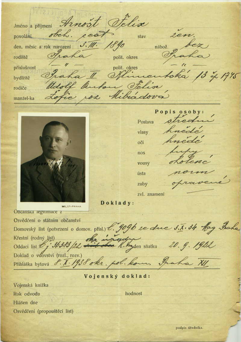 Nationalarchiv Prag > Polizei-Direktion Prag > 1941-1950 > F > Felix Arnošt