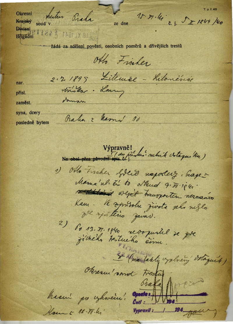 Nationalarchiv Prag > Polizei-Direktion Prag > 1941-1950 > F > Fischer Otto