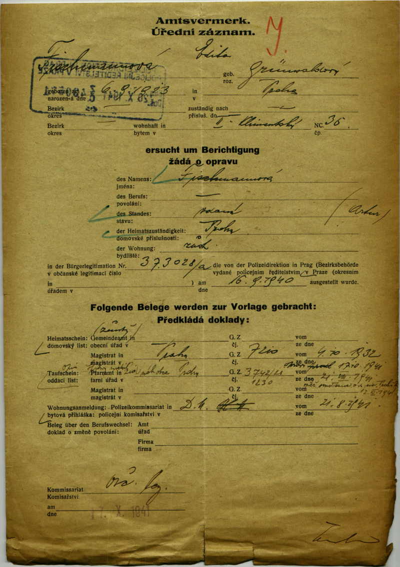 Fischmannová Edith: Žádost o opravu v občanské legitimaci