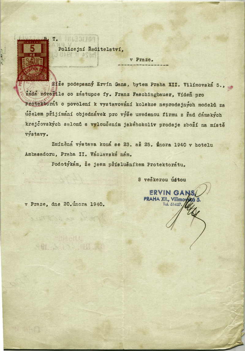 Gans Ervín: Žádost o povolení k vystavování neprodejných modelů