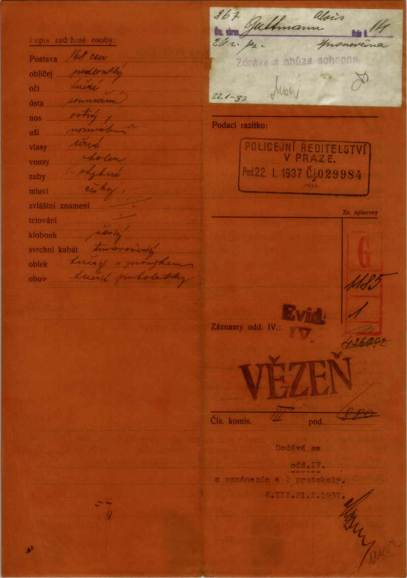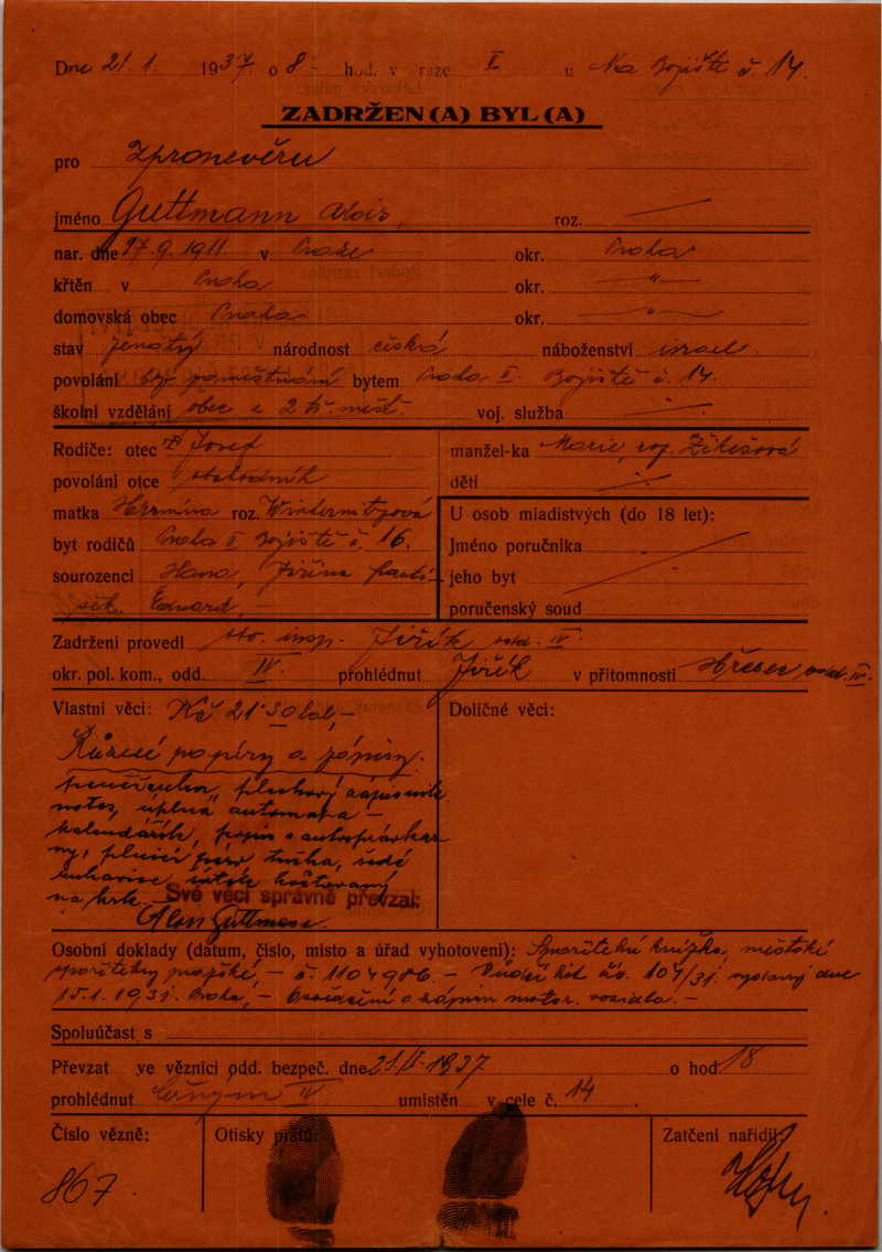 Nationalarchiv Prag > Polizei-Direktion Prag > 1931-1940 > G > Gutmann Alois