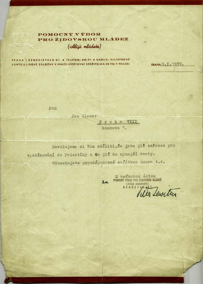 Glaser Hanuš: Potvrzení o registraci k vystěhování
