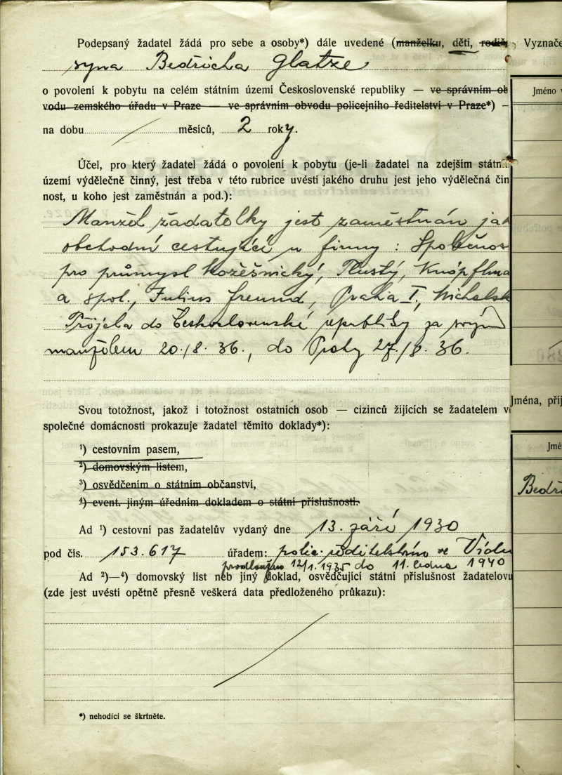 Glatzová Anna: Residence permit application