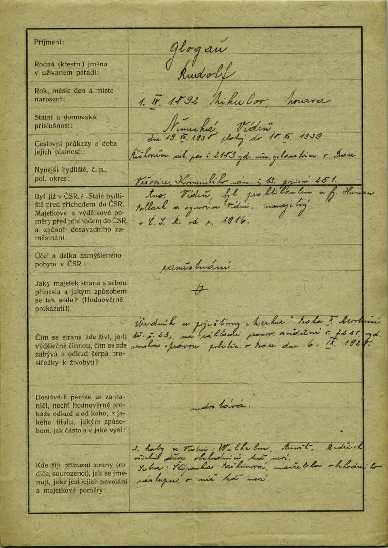 Nationalarchiv Prag > Polizei-Direktion Prag > 1931-1940 > G > Glogau Rudolf