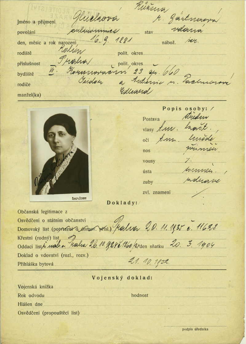 Nationalarchiv Prag > Polizei-Direktion Prag > 1931-1940 > G > Glücková Růžena